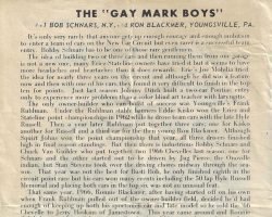 In support of the nomination of Ron Blackmer for induction into the Chautauqua Sports Hall of Fame, the organization received a bulky notebook that contained page after page of statistics, photos, old news clippings and a lot of other information that detailed the career of one of the area's best-known racing legendsIn one of those clippings from May 22, 1965, the headline in The Post- Journal read "Who Stops Ron Blackmer?" The answer is easy - very few.