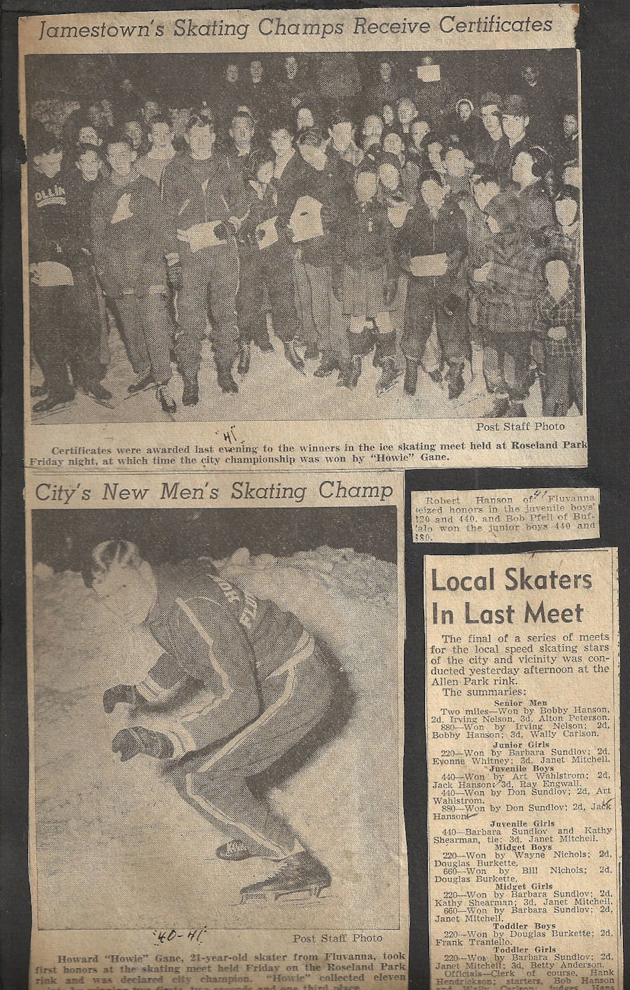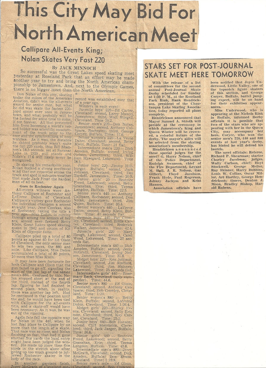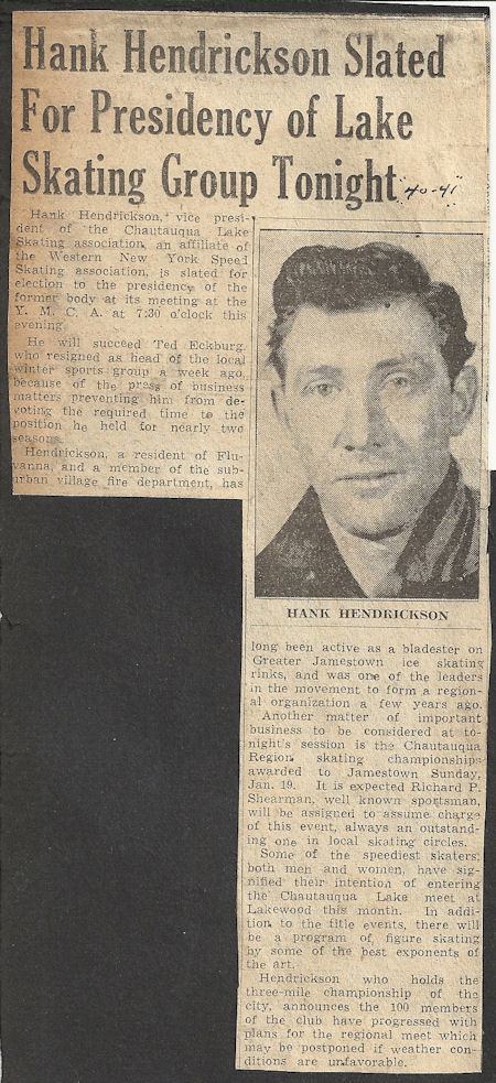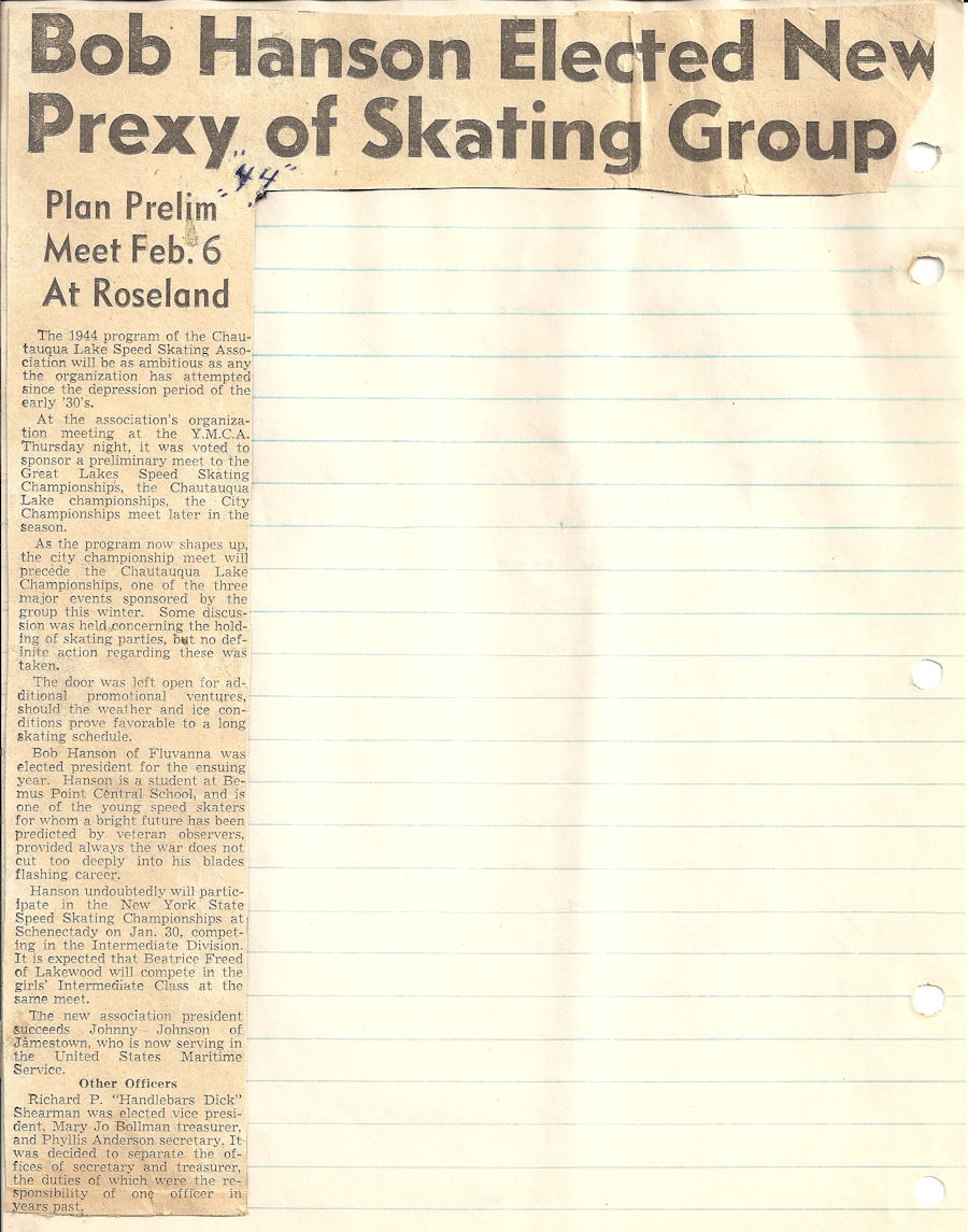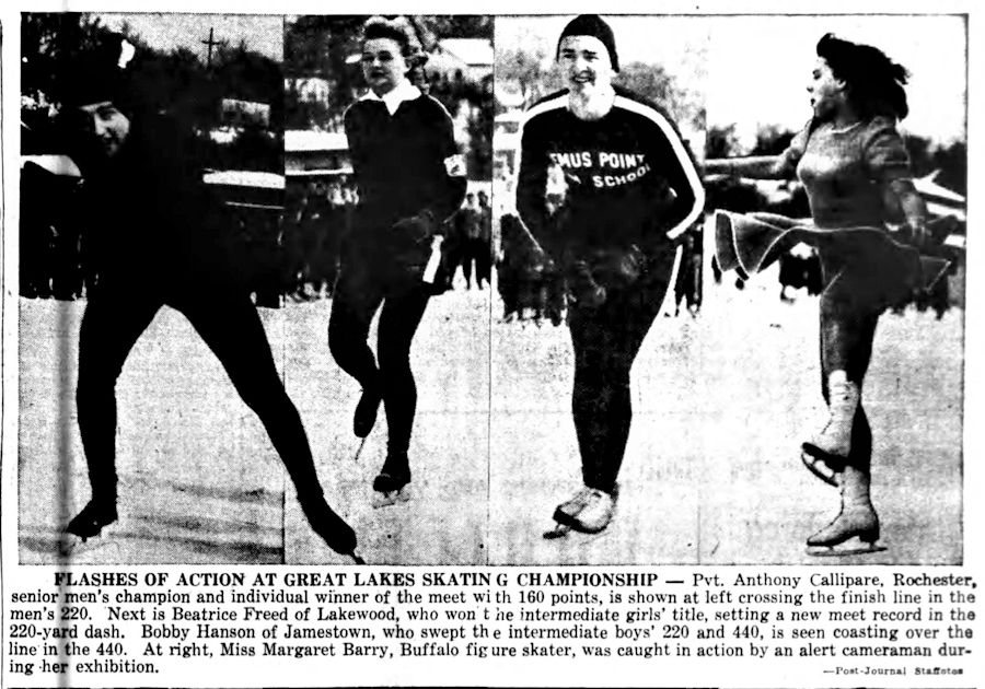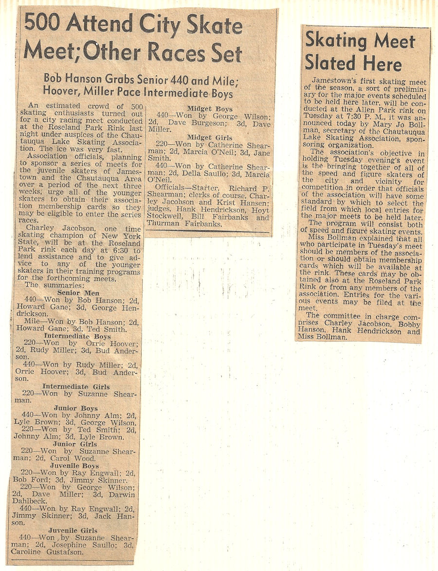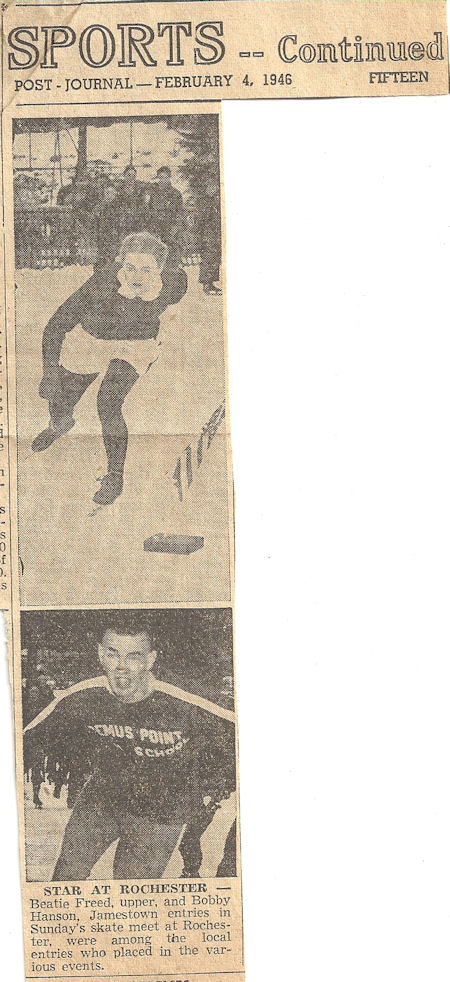 Bemus Point native Bob Hanson began competitive ice skating at the age of 12 and became a power locally. His winning continued when he competed at meets in Buffalo, Erie and Cleveland.
