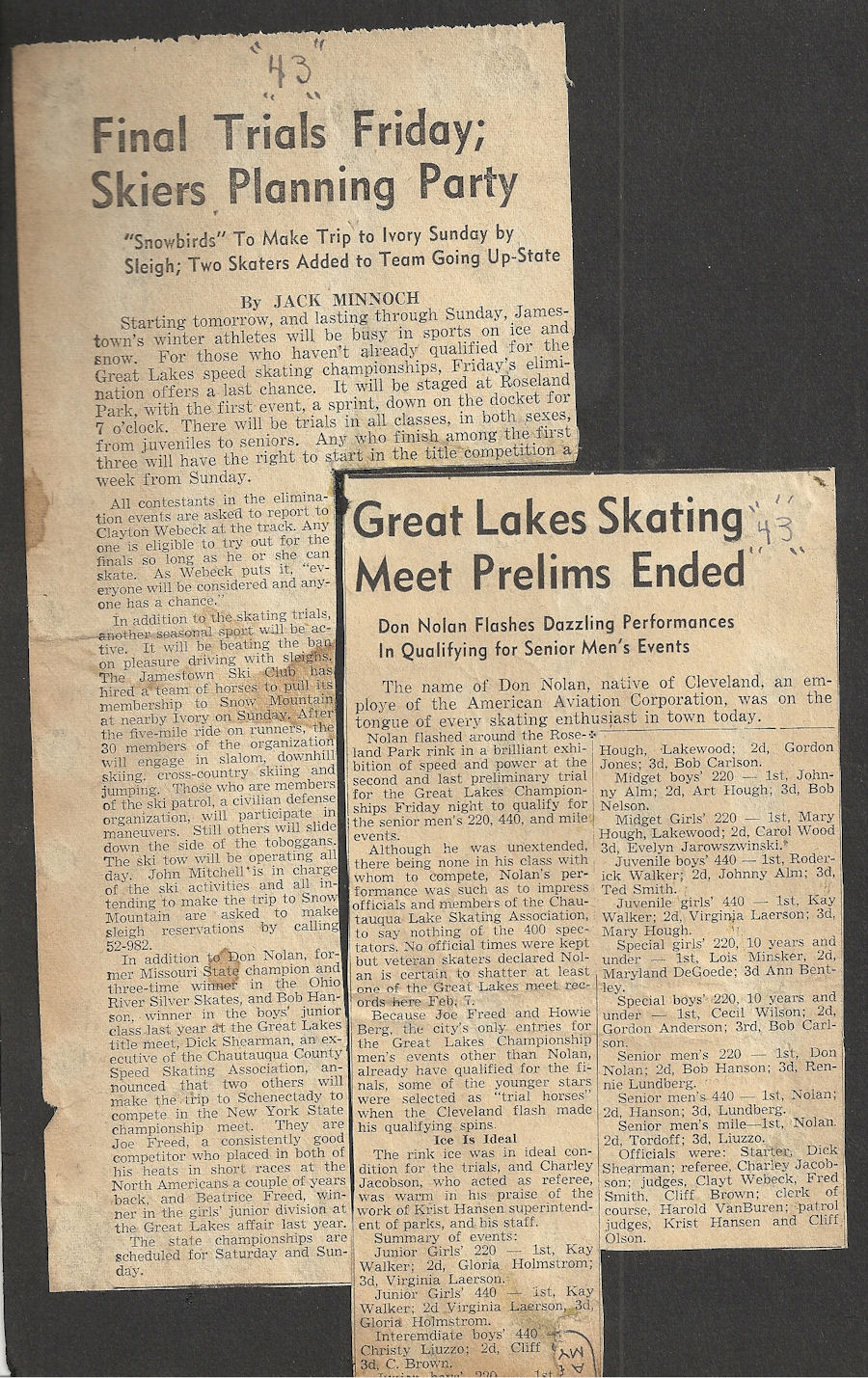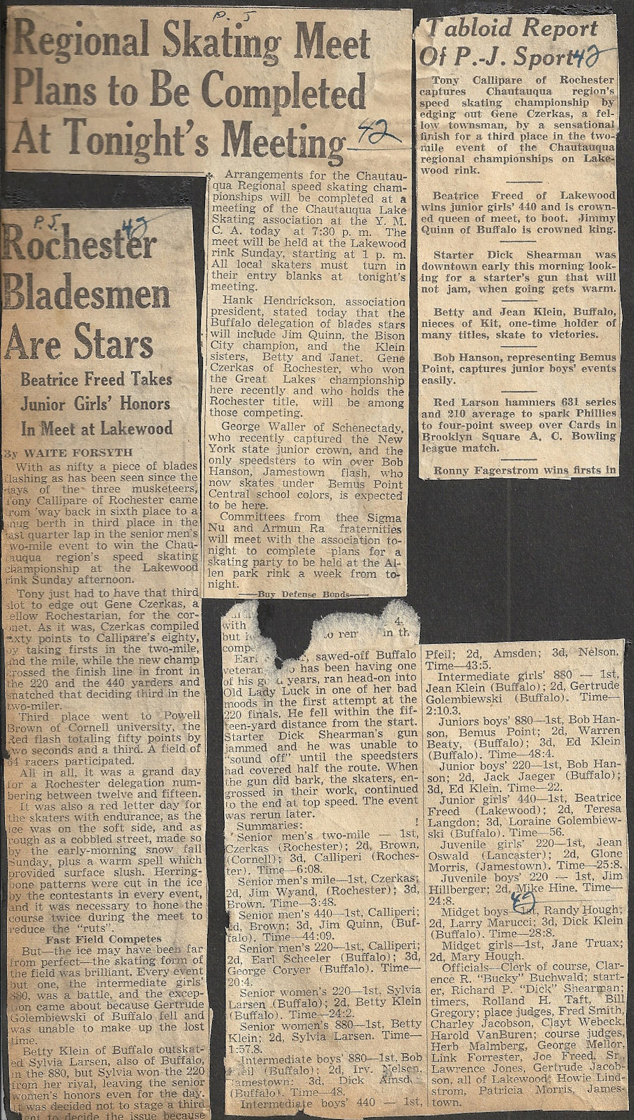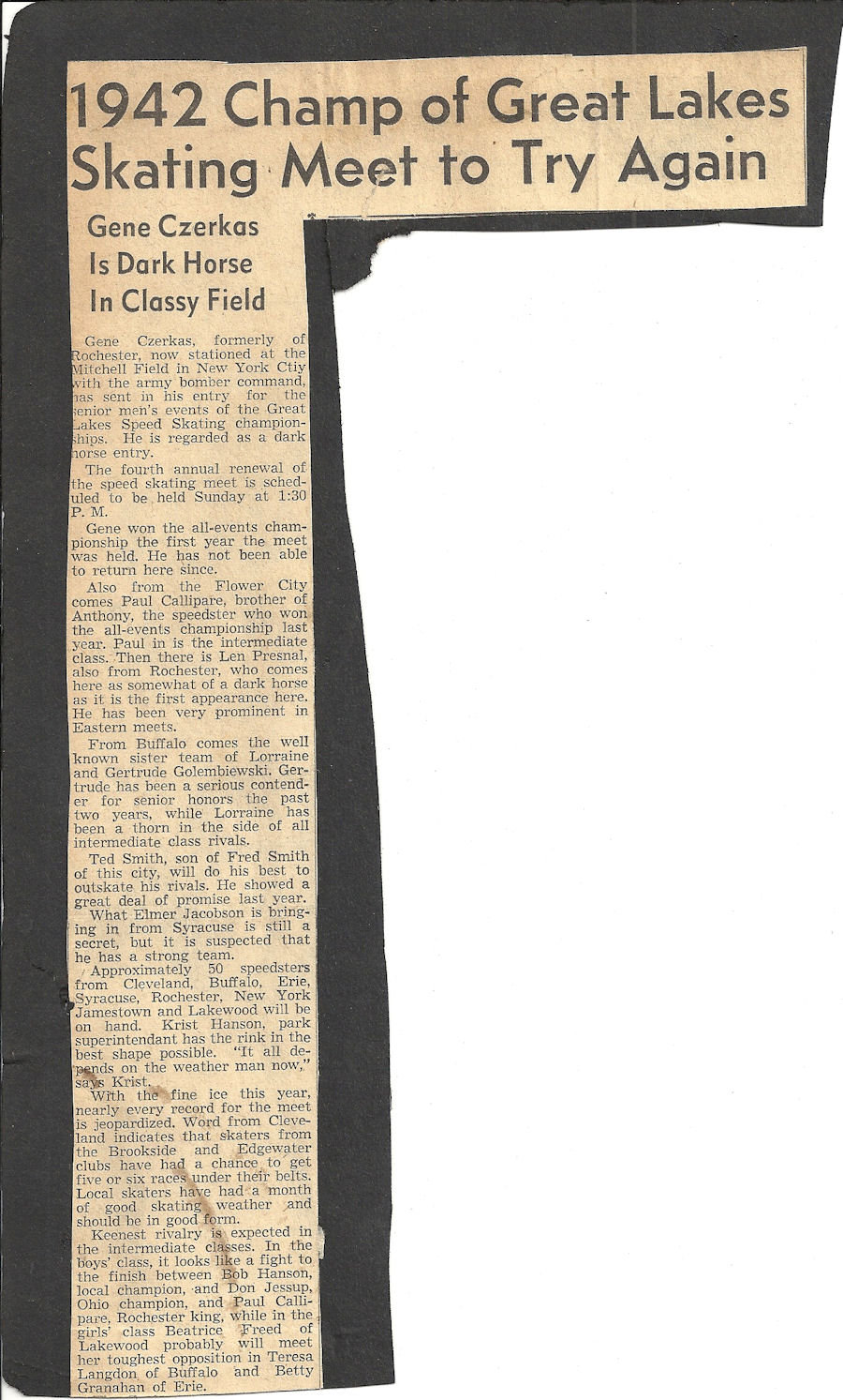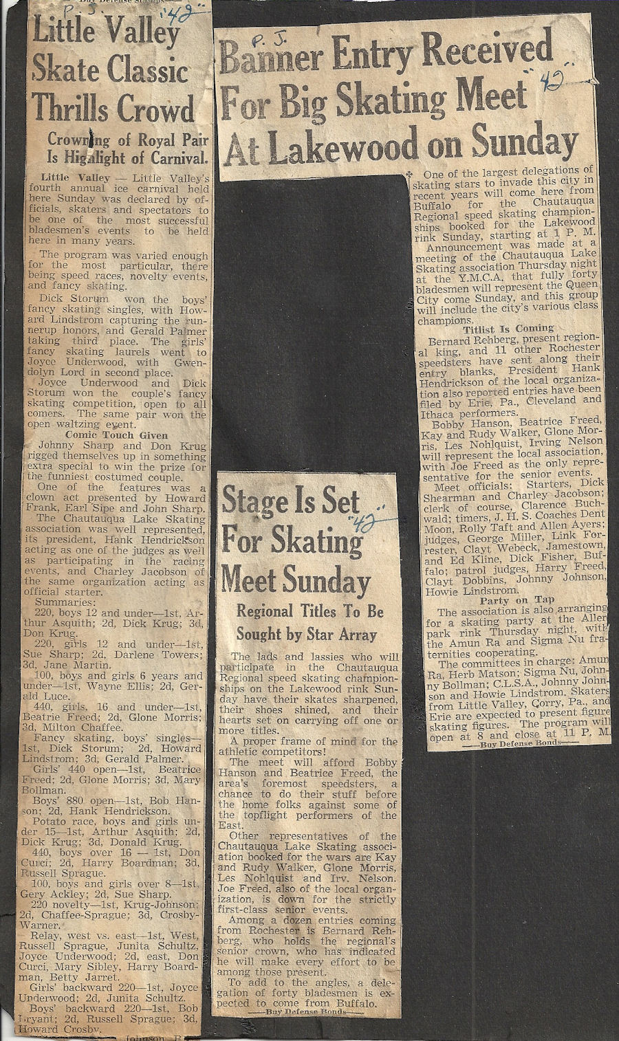 Bemus Point native Bob Hanson began competitive ice skating at the age of 12 and became a power locally. His winning continued when he competed at meets in Buffalo, Erie and Cleveland.