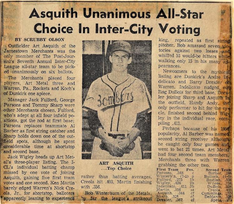 Beside baseball, Winterburn excelled in basketball and was named to the All-Western New York All-Star Team as a senior. Not very many Jamestown or Chautauqua County players have ever been bestowed with that honor.