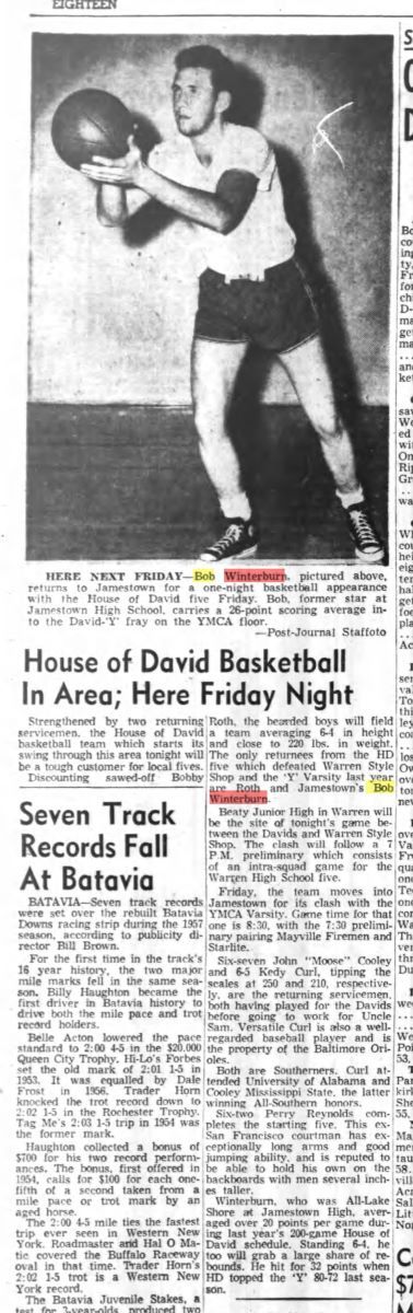 In the 1960s, Winterburn first set the Jamestown YMCA record with 42 points and later that year he topped that with 46, including an amazing 24-25 free throws in a 111-86 loss to Franklin, Pennsylvania.