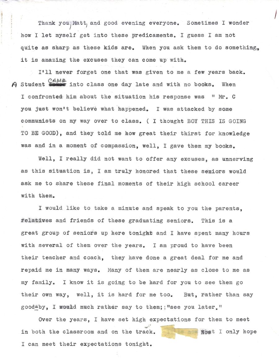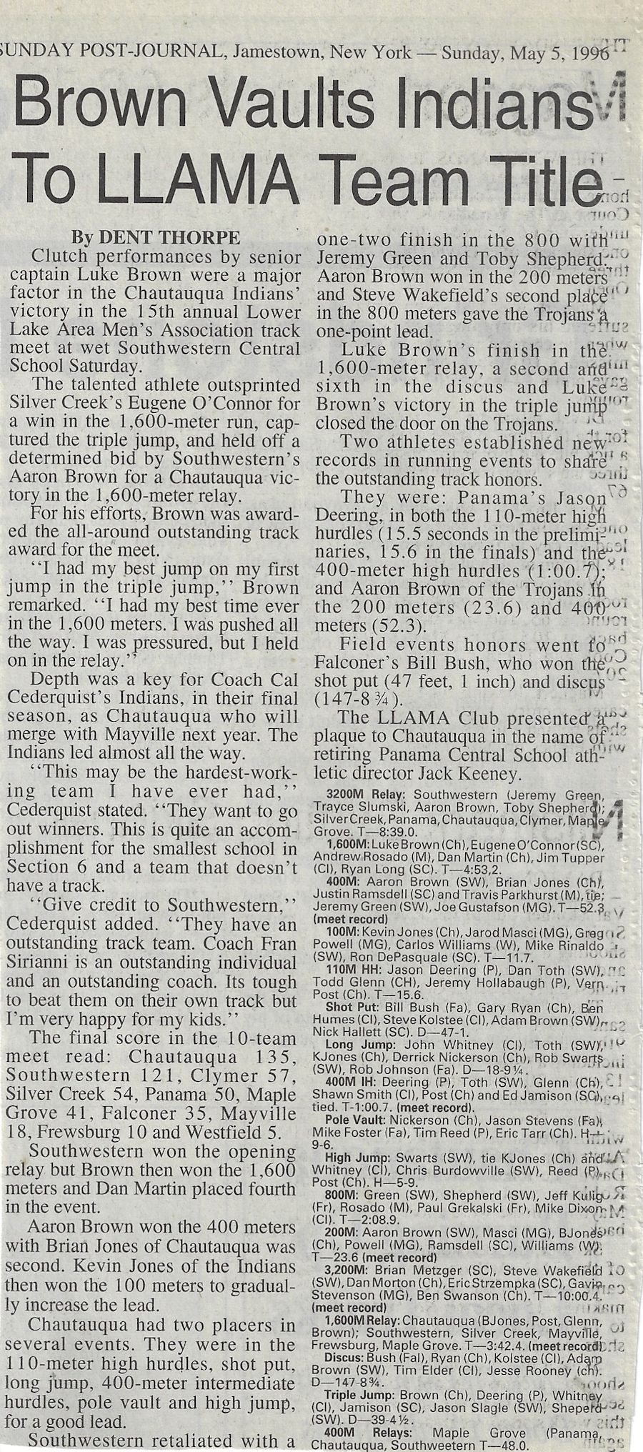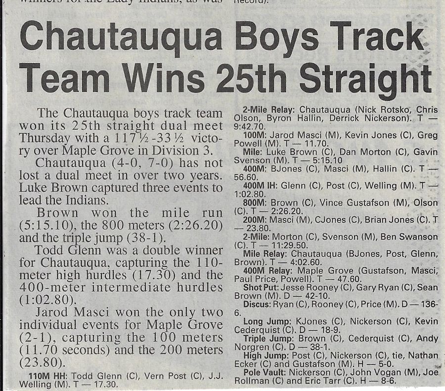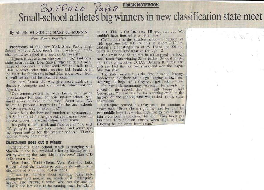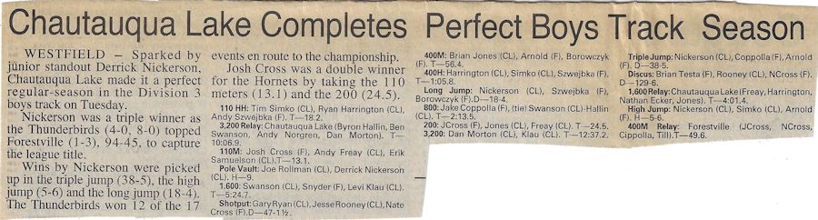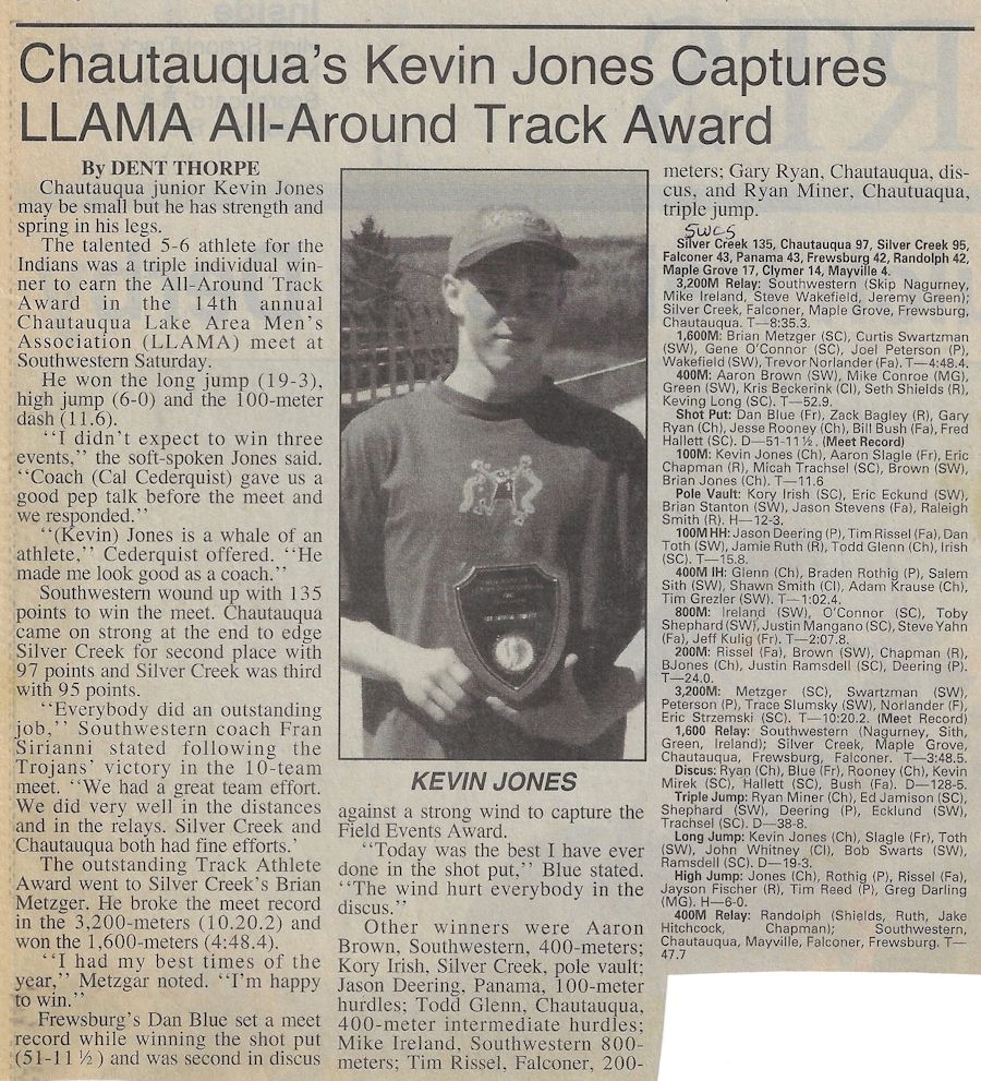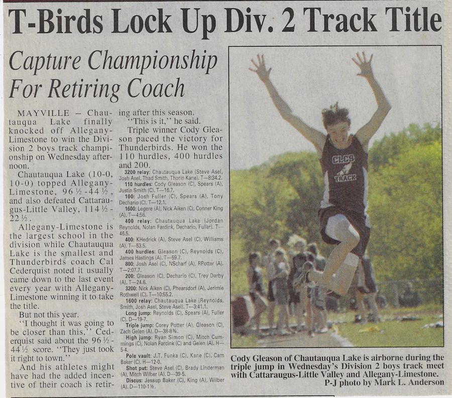 His teaching and coaching career began at the original Chautauqua Central School in 1972 working with a track team that hadn't won a dual meet or a championship in 40 years. Without any real track facilities and a dozen or fewer athletes, Cederquist worked tirelessly and turned the program into a winner, claiming three consecutive championships and sent several of his athletes to Section 6 qualifiers from 1979-81, including Shawn Smith, who was a Section 6 1,000 meter champ and the sectional record holder.