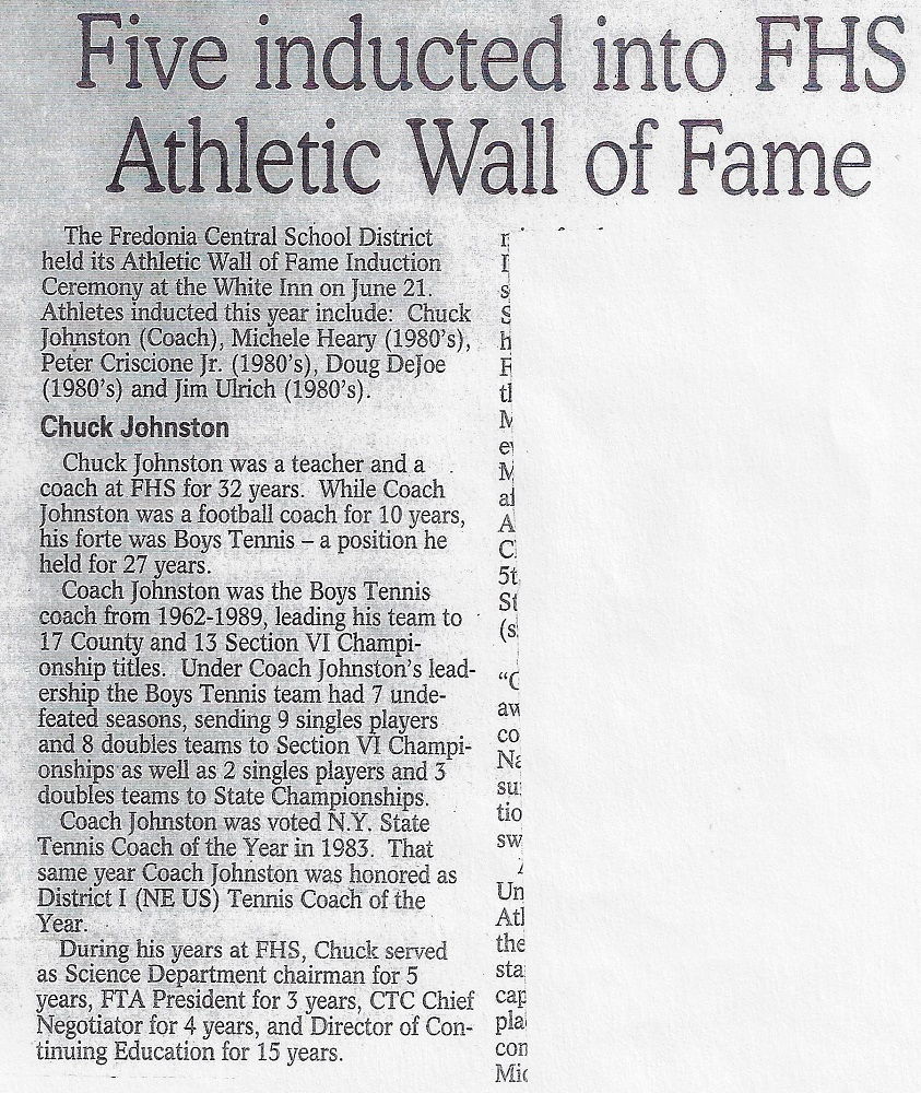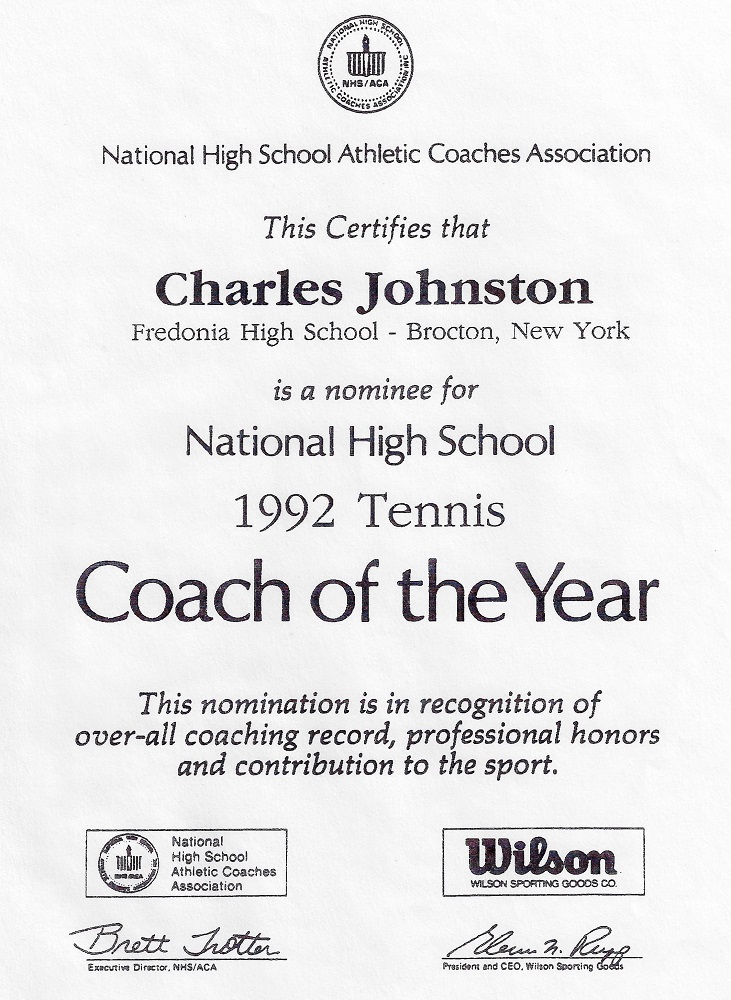 In 1962, a few parents approached the Fredonia Board of Education, requesting the formation of a tennis team. Johnston had previous tennis experience, and was handed the job.