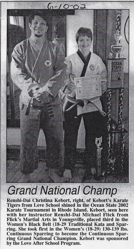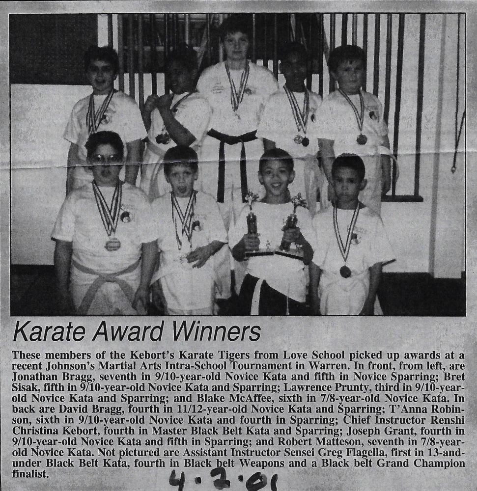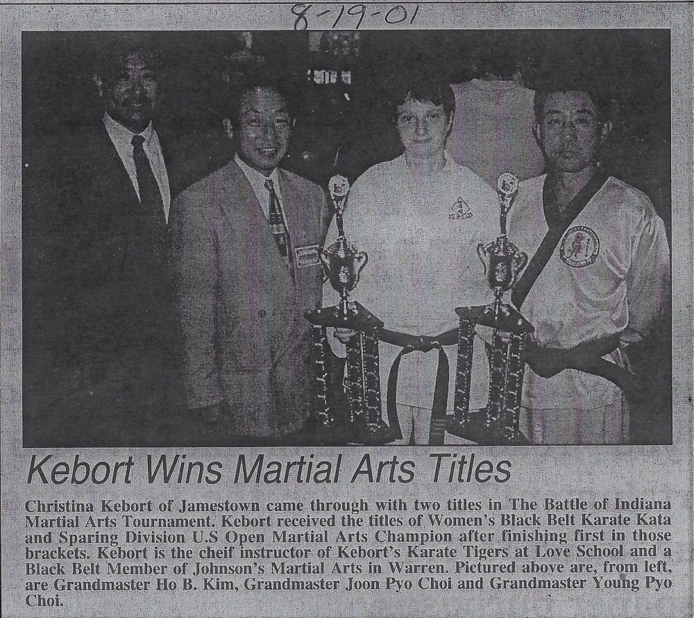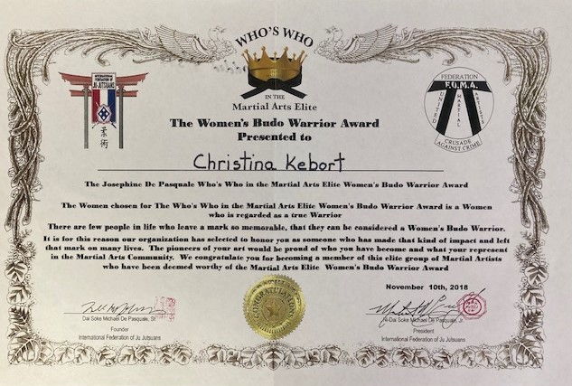 Kebort earned her 1st Dan Black Belt in 1996 and became a certified karate instructor in 1998. Her 5th Dan Black Belt was achieved in 2002 and her 8th Dan Senior Master Black Belt was awarded in 2014. She credits the mentoring she received from Rick Johnson at Johnson’s Martial Arts Academy of Warren, PA and Daniel Genovese Kempo Karate for her success. Also instrumental in her career was Bob Servis. She is grateful for all those who supported her through the years.