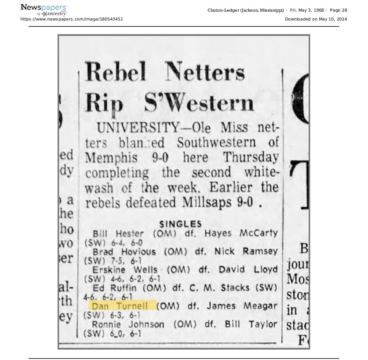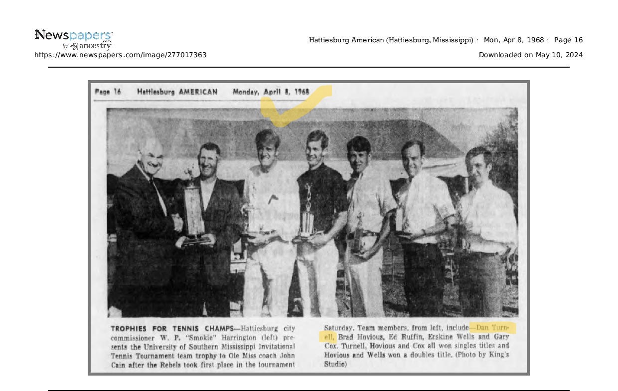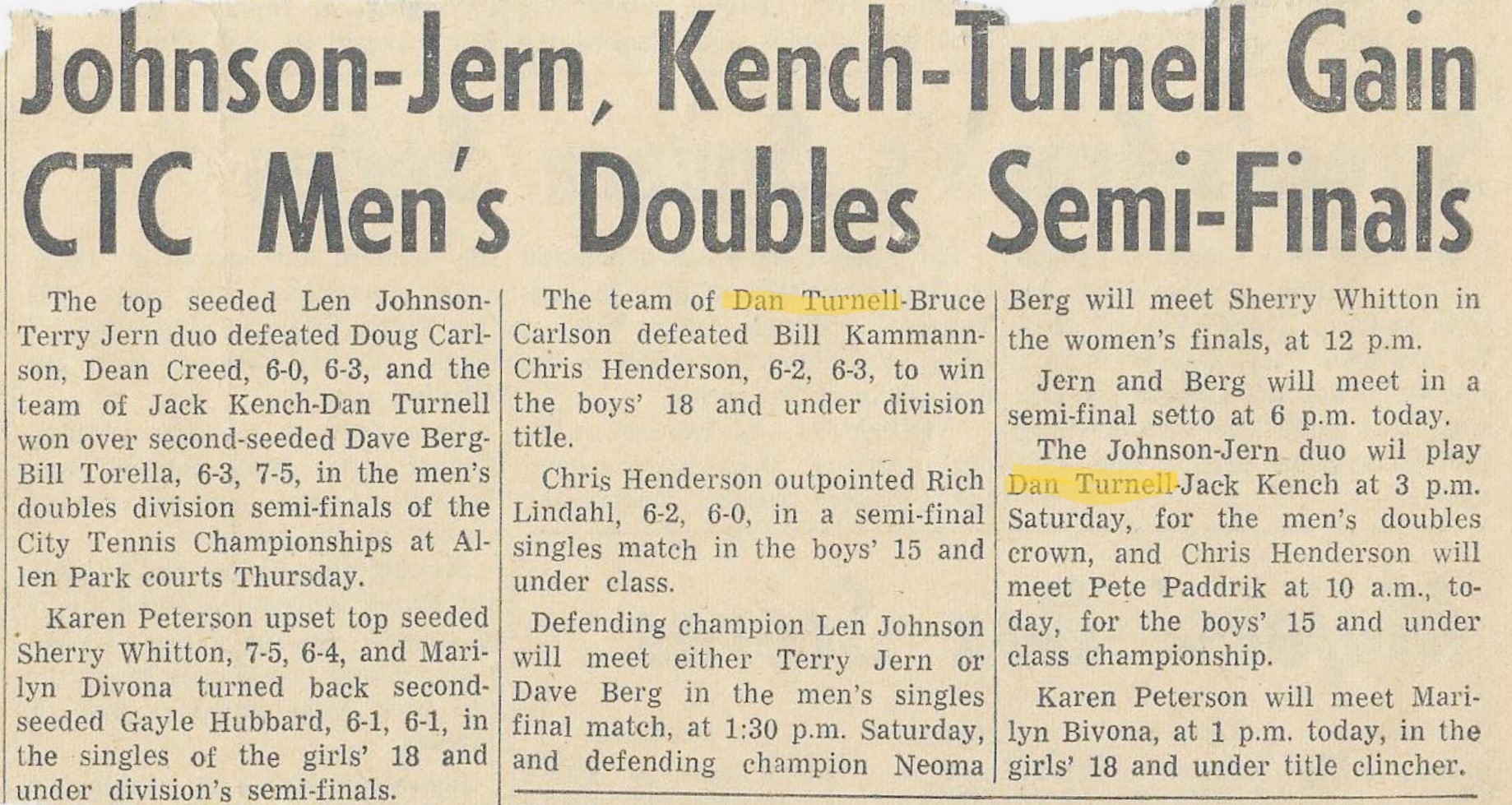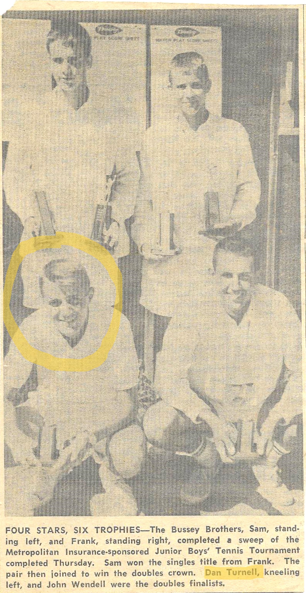 Of Nelson Turnell's many students, one who enjoyed success in tennis was his own son, Dan. This page is dedicated to Dan, one of Nelson's greatest on court achievements.