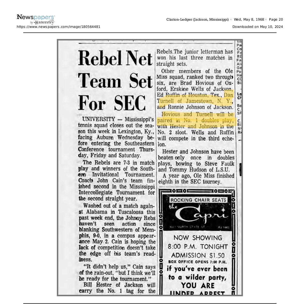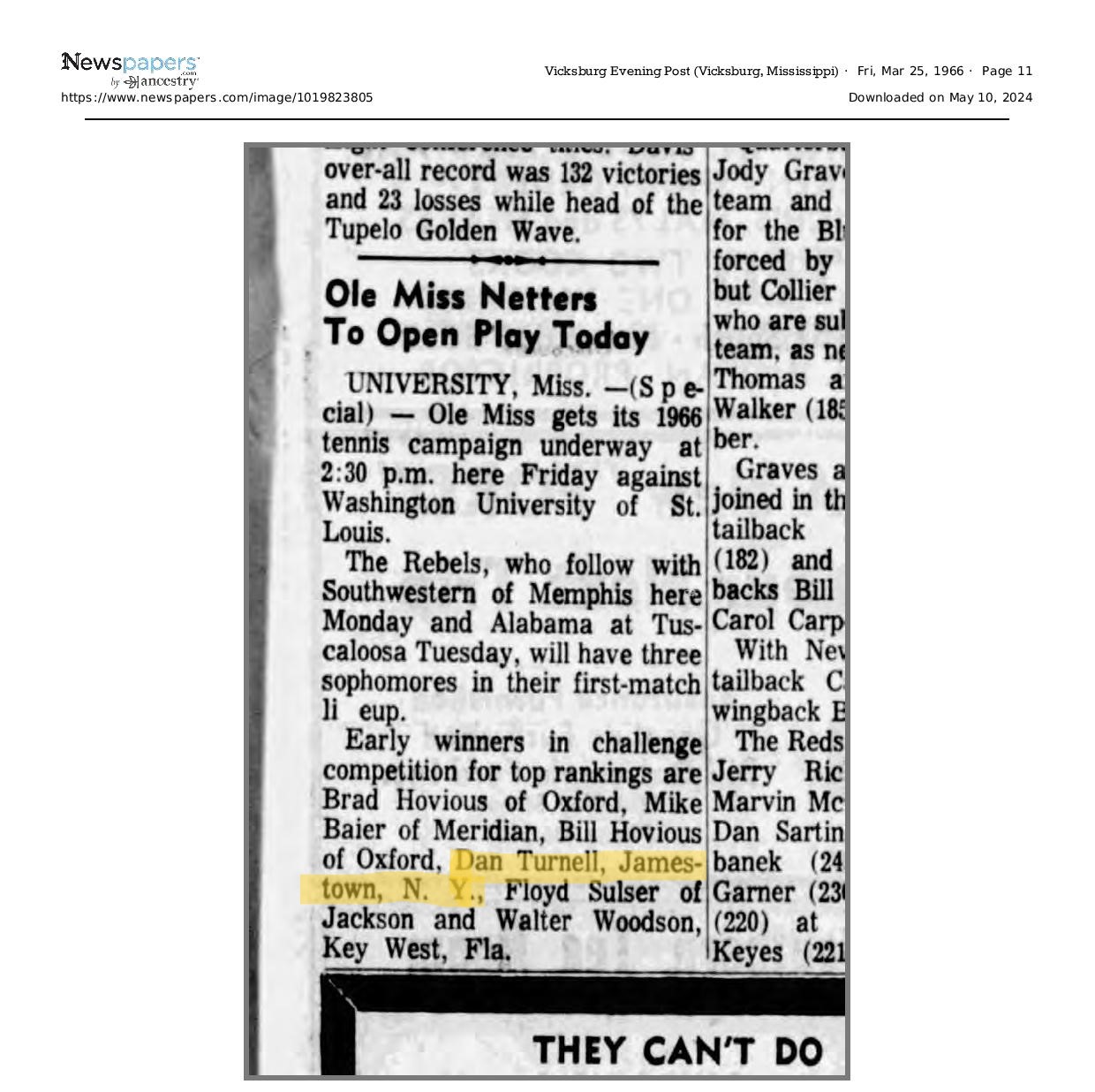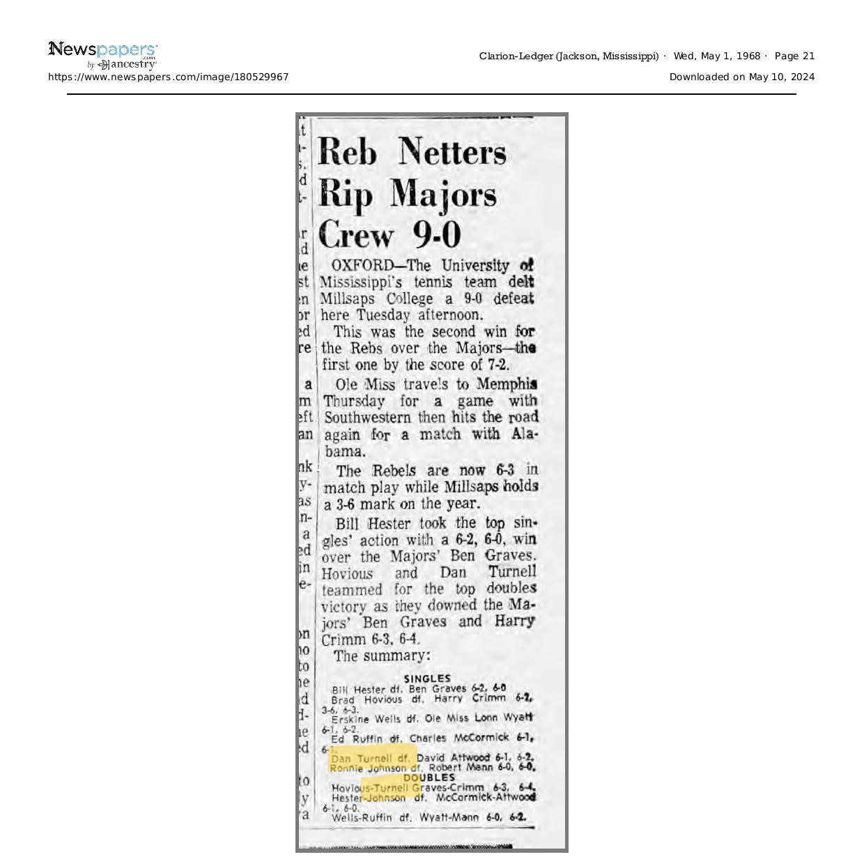Of Nelson Turnell's many students, one who enjoyed success in tennis was his own son, Dan. This page is dedicated to Dan, one of Nelson's greatest on court achievements.