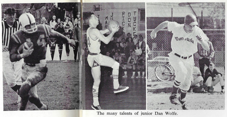 Wolfe wore the Monarchs’ colors from September 1965 to his graduation in June 1969. He earned 15 varsity letters: 4 in football, 4 in baseball, 4 in track and field and 3 in basketball.