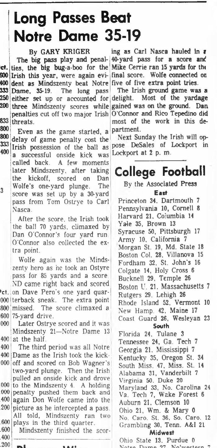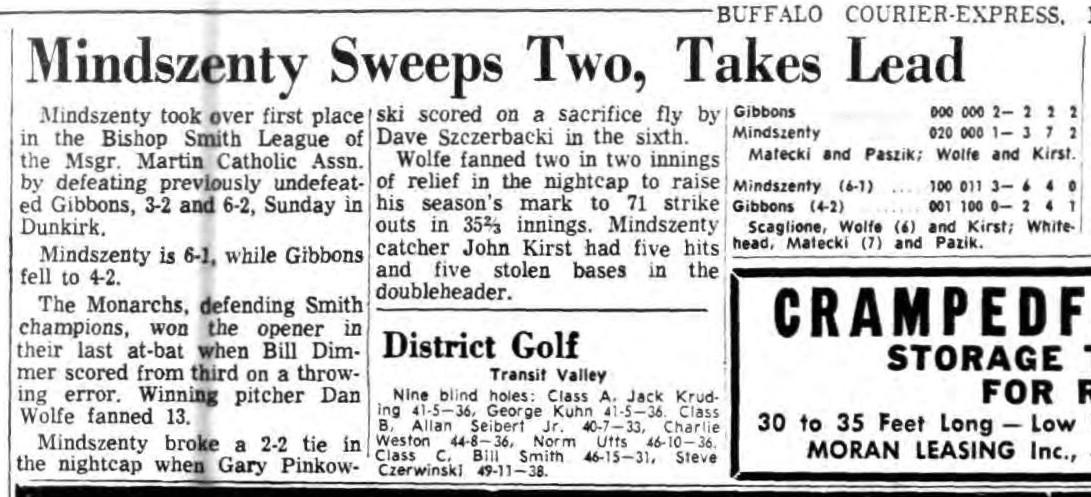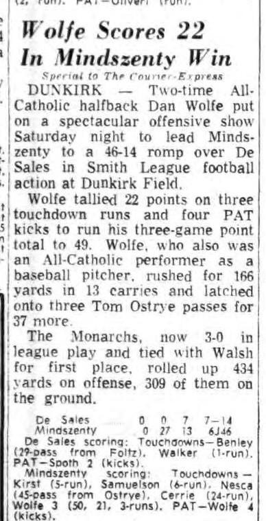 That question is almost sure to elicit a debate – maybe even a heated argument – unless the question is “Who is the greatest all-around athlete in the history of Cardinal Mindszenty High School in Dunkirk, NY?”