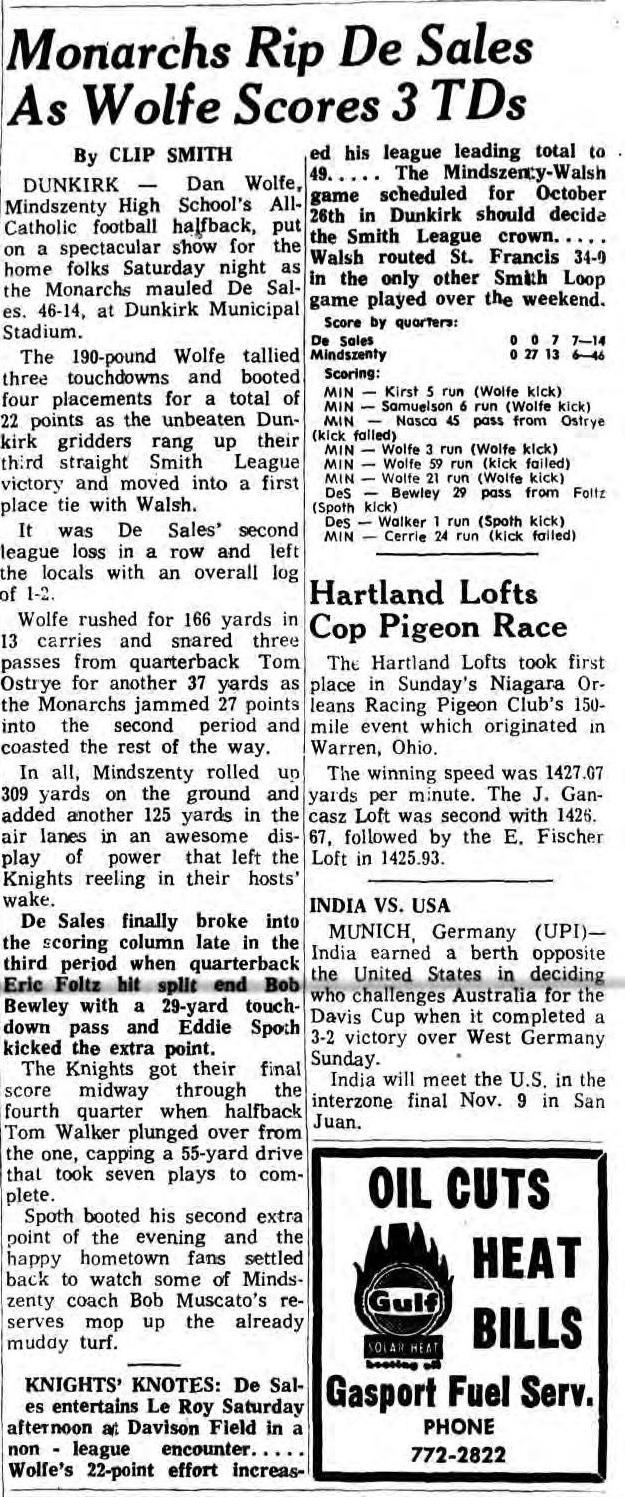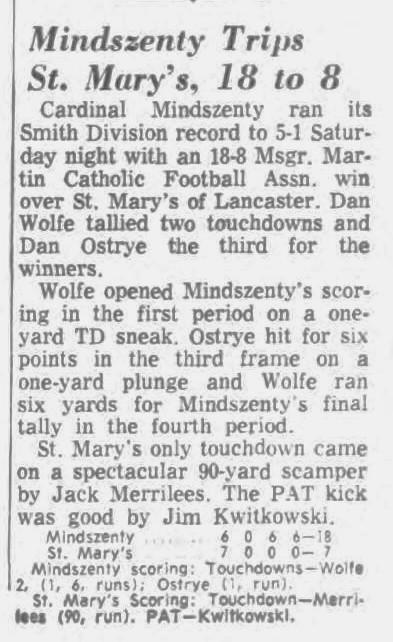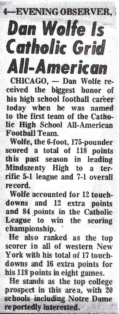 Mindszenty, which opened in 1952 and closed in 1979, has claimed many outstanding athletes as alumni; but there is nearly universal agreement that the greatest all-around player was Dan Wolfe.