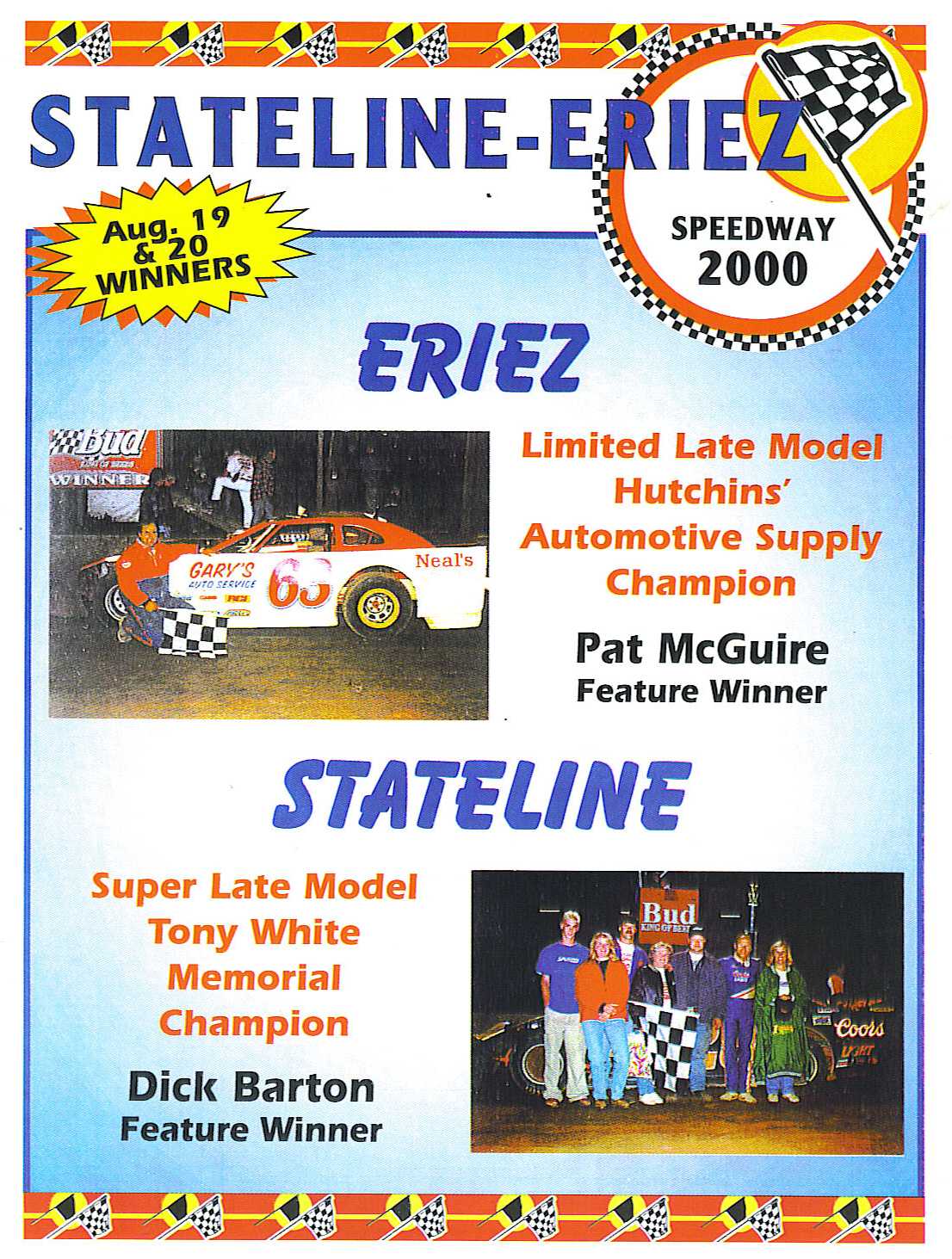 In 1996, the Barton-Nielson combination dominated the local racing circuit with track titles at all three weekly racing stops. Victory lane was reached 18 times with seven at Stateline and six at Ace High Speedway (formerly Speedway 7) along with four at Eriez leading the way.