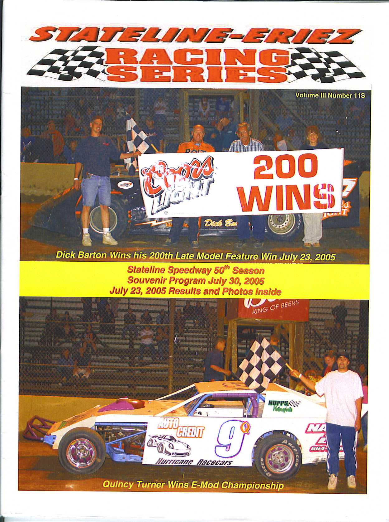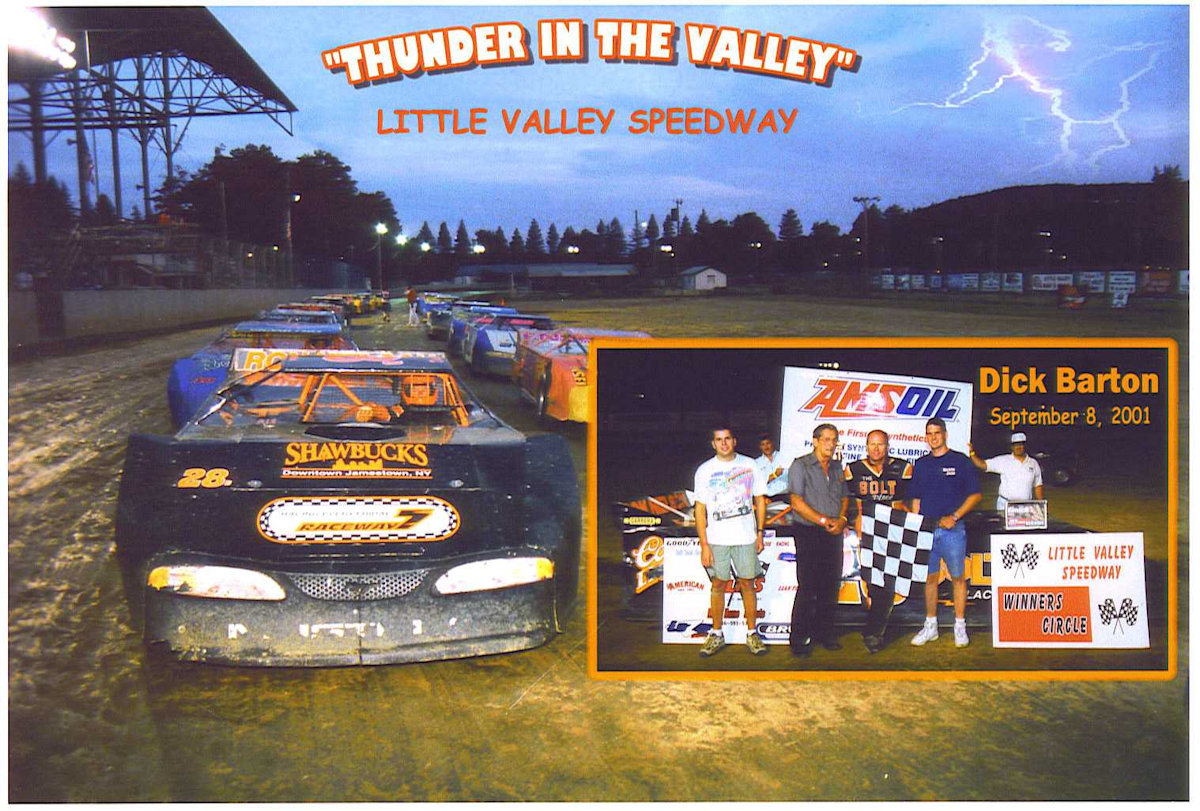 In the year 2005, Dick Barton reached a milestone that had never been previously achieved by any other racer from the region of Western New York and Northwestern Pennsylvania. On July 23rd at Stateline Speedway, Dick earned his 200th career dirt late model feature win. He also scored four other wins and 30 top ten finishes in forty-one starts. Barton was the runner-up in points at Raceway 7, Little Valley and the Regional Racing Series for the 2005 season.