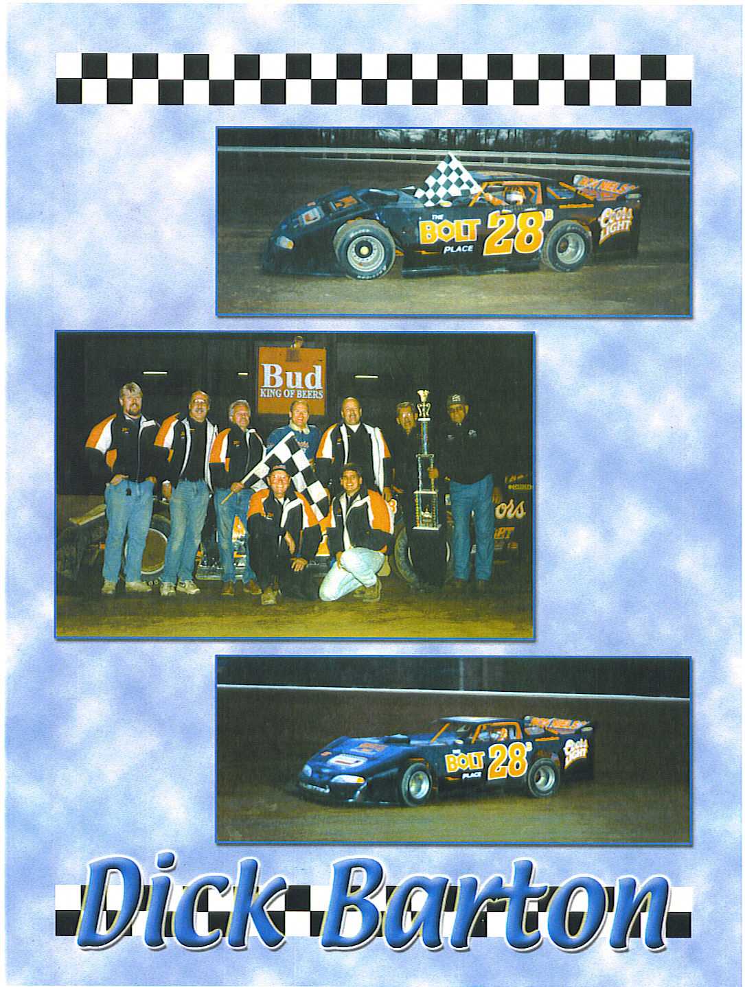 In 2003 The Bolt Place Team had another banner year. Seven wins at McKean County Raceway resulted in Barton's third track championship at the Smethport, PA oval. Two victories, including the inaugural $5,000 to win Fall Classic, and a string of top ten finishes allowed Dick to claim his fourth career track title at Raceway 7. The United Late Model Series Tri-State Challenge and the ULMS season-long point championship also fell to the overpowering consistency of the Barton gang. Another season highlight was a second place run in the annual MACS sanctioned Fallfest at Challenger Raceway. Finally, based on the quantity and quality of top three feature finishes, Dick captured his sixth Cavalcade LM Championship. He then ranked second on that all-time list to legendary Bob Wearing Sr., who had seven titles in the 30-year history of the Cavalcade Award.