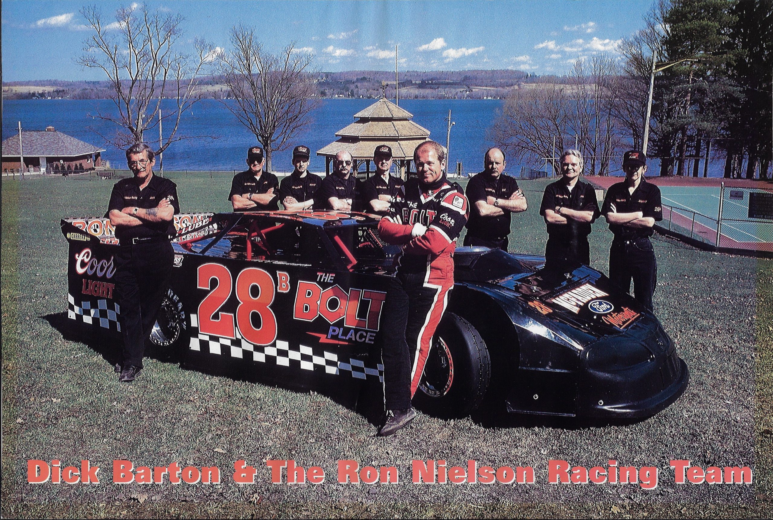 In 1993, Barton joined forces with Meadville businessman Ron Nielson to form a new team that included his former Race Team 14 crew members. Nielson's potent black Fords, sponsored by The Bolt Place, were numbered 28 in honor of the late NASCAR driver Davey Allison.