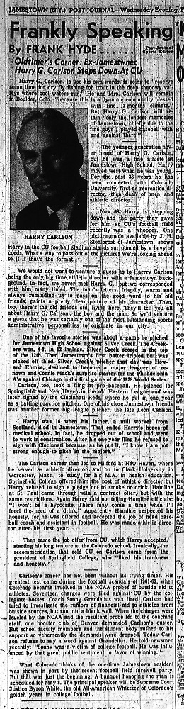 One goal of the Chautauqua Sports Hall of Fame is to shine a spotlight on those individuals who were born and lived in this county yet made important contributions in the world of sports in other places in the United States. One such individual is Harry G. Carlson, a member of the CSHOF Class of 2022.