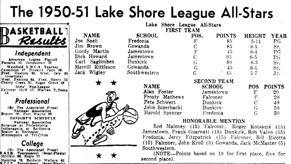 He was born in Jamestown in 1934 and was a 1952 graduate of the former Lakewood High School (now Southwestern), where his academic abilities earned him the honor of class salutatorian. He also was an incredible athlete (many say he was the best ever) that was an all-star in five sports - football, basketball, baseball, track and volleyball. In fact, his long-jump record of 22 feet, 2 inches still stands after more than 60 years.