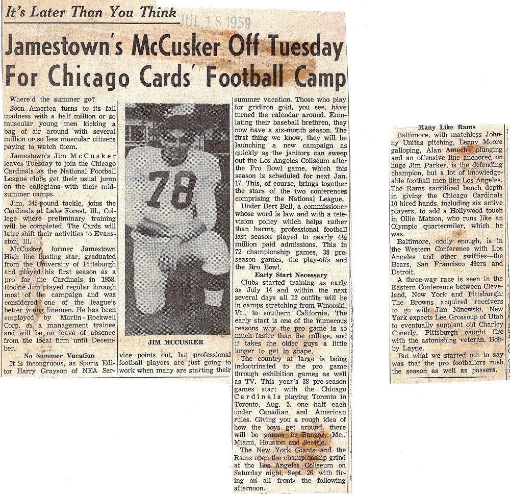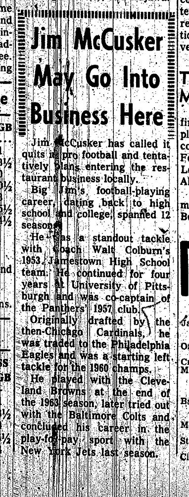 Jim McCusker was a star defensive lineman at Jamestown High School and was named a Western New York High School All-Star two times.