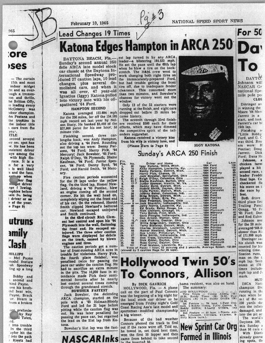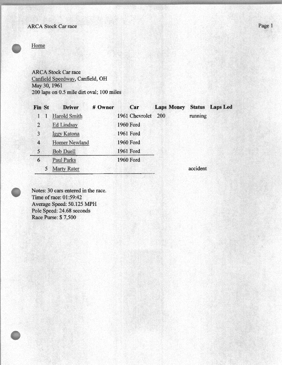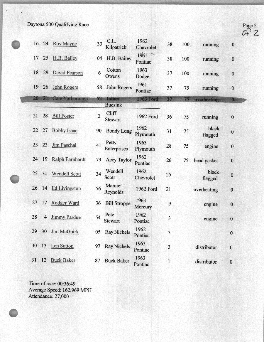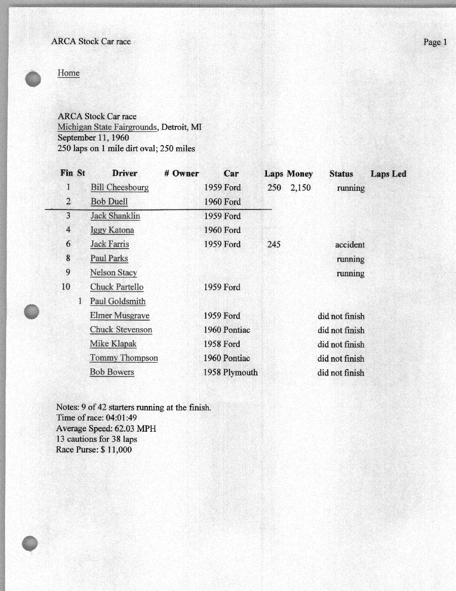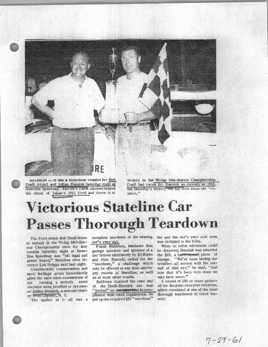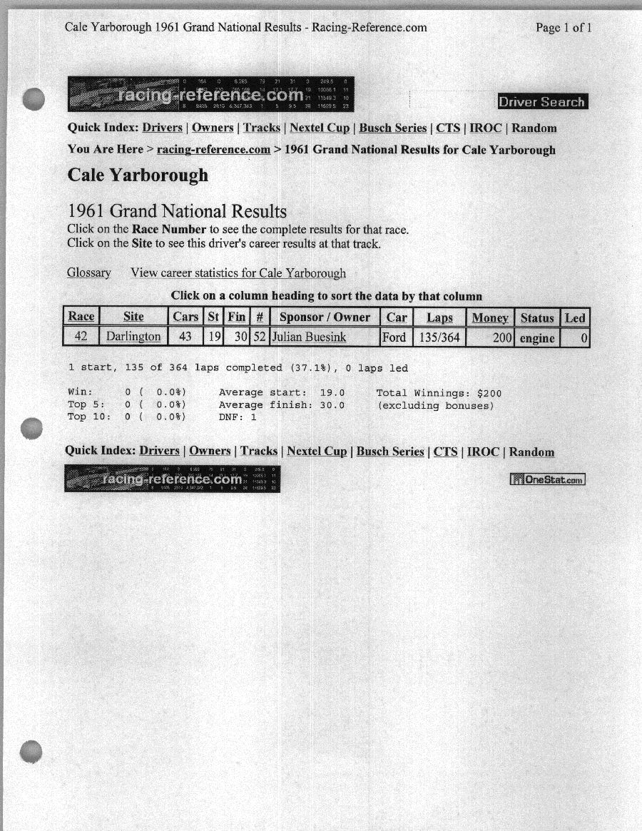 To support the nomination of Julian Buesink to the CSHOF, research on his auto racing career was compiled by Dennis Goggin and organized by the year covered.