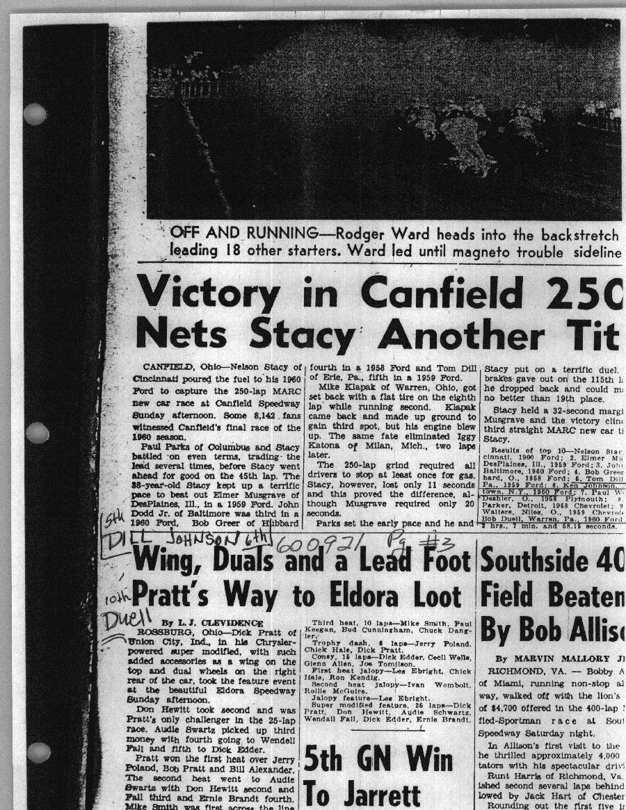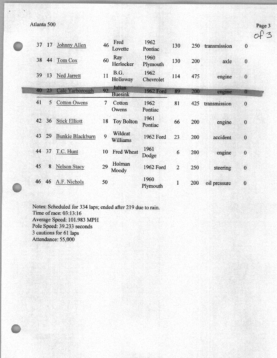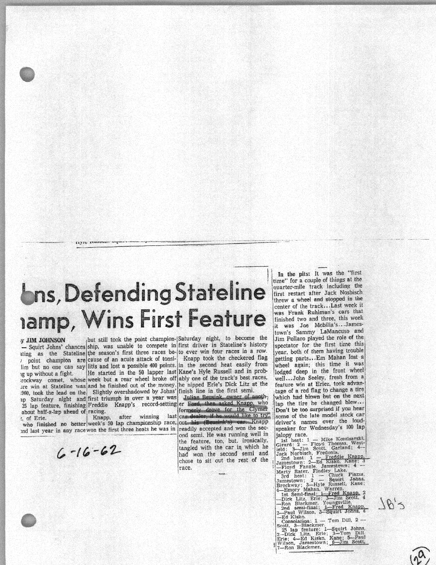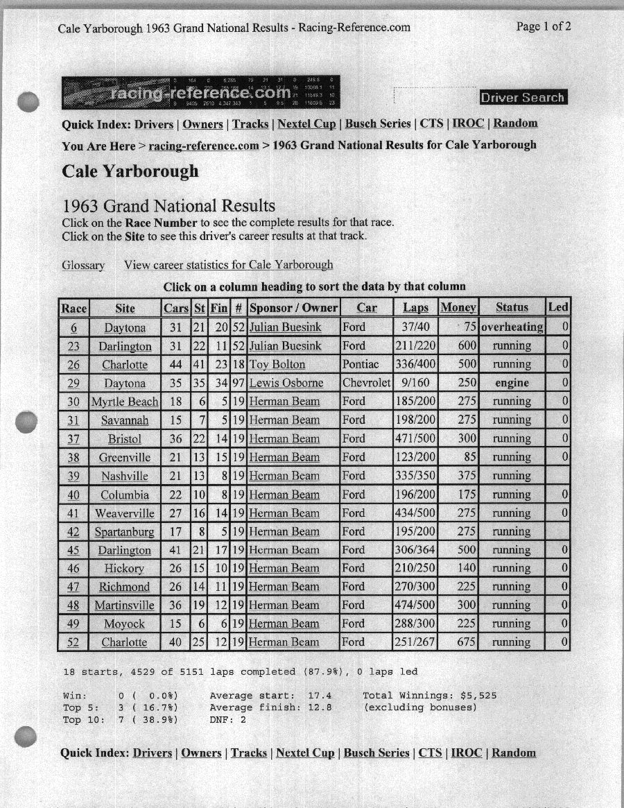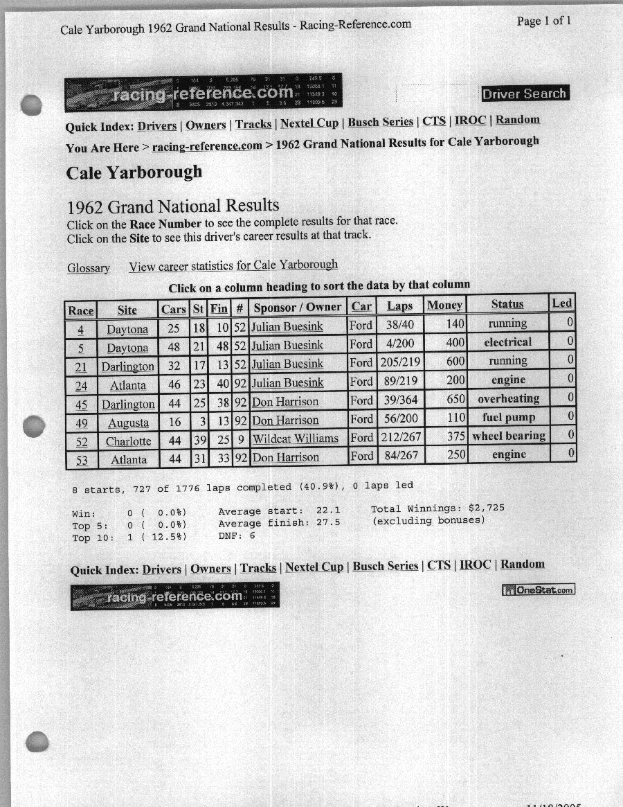 To support the nomination of Julian Buesink to the CSHOF, research on his auto racing career was compiled by Dennis Goggin and organized by the year covered.