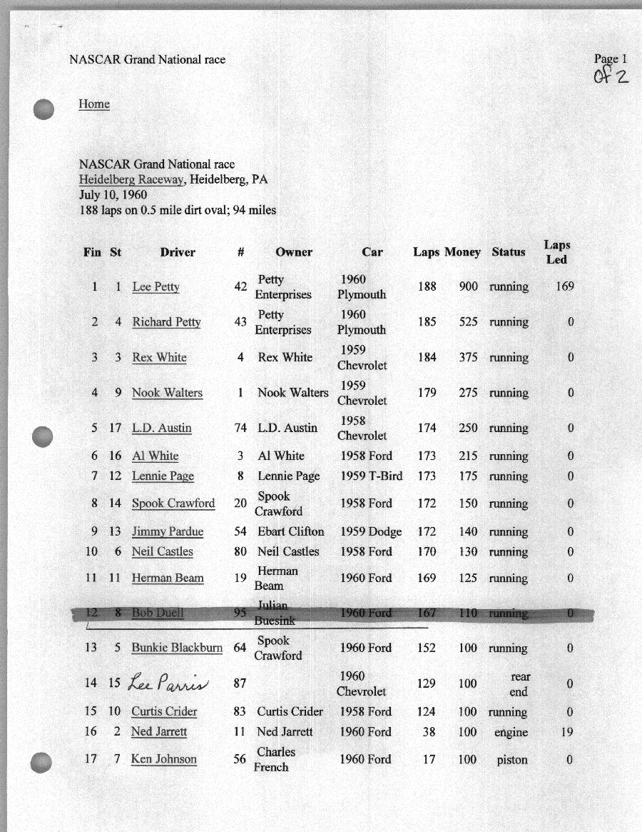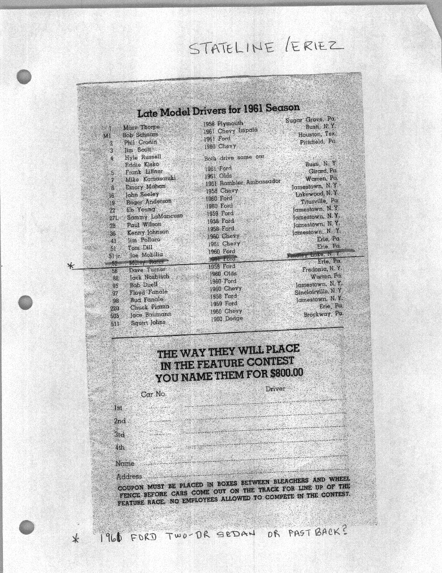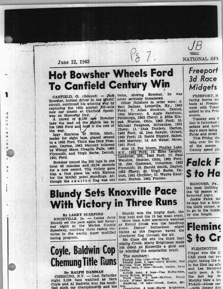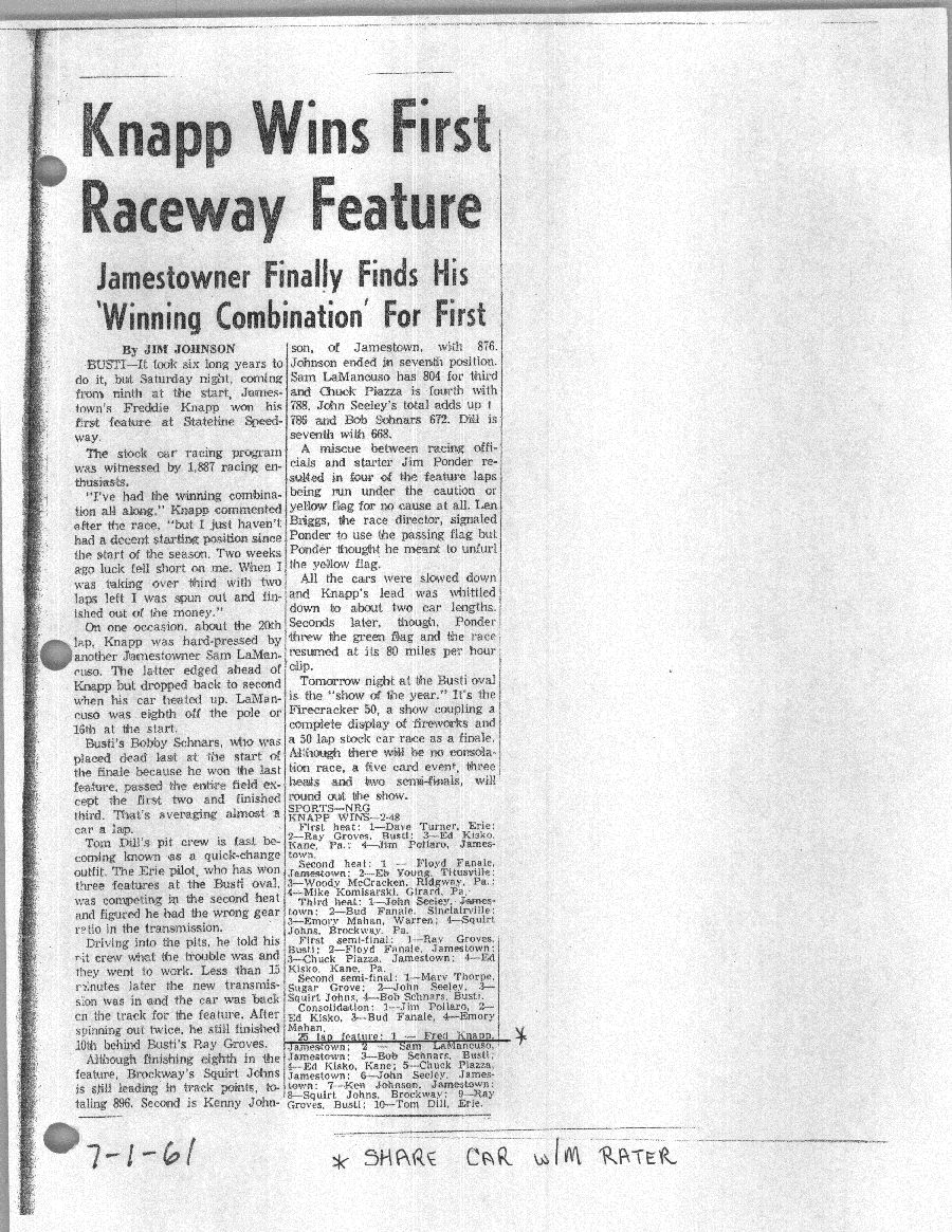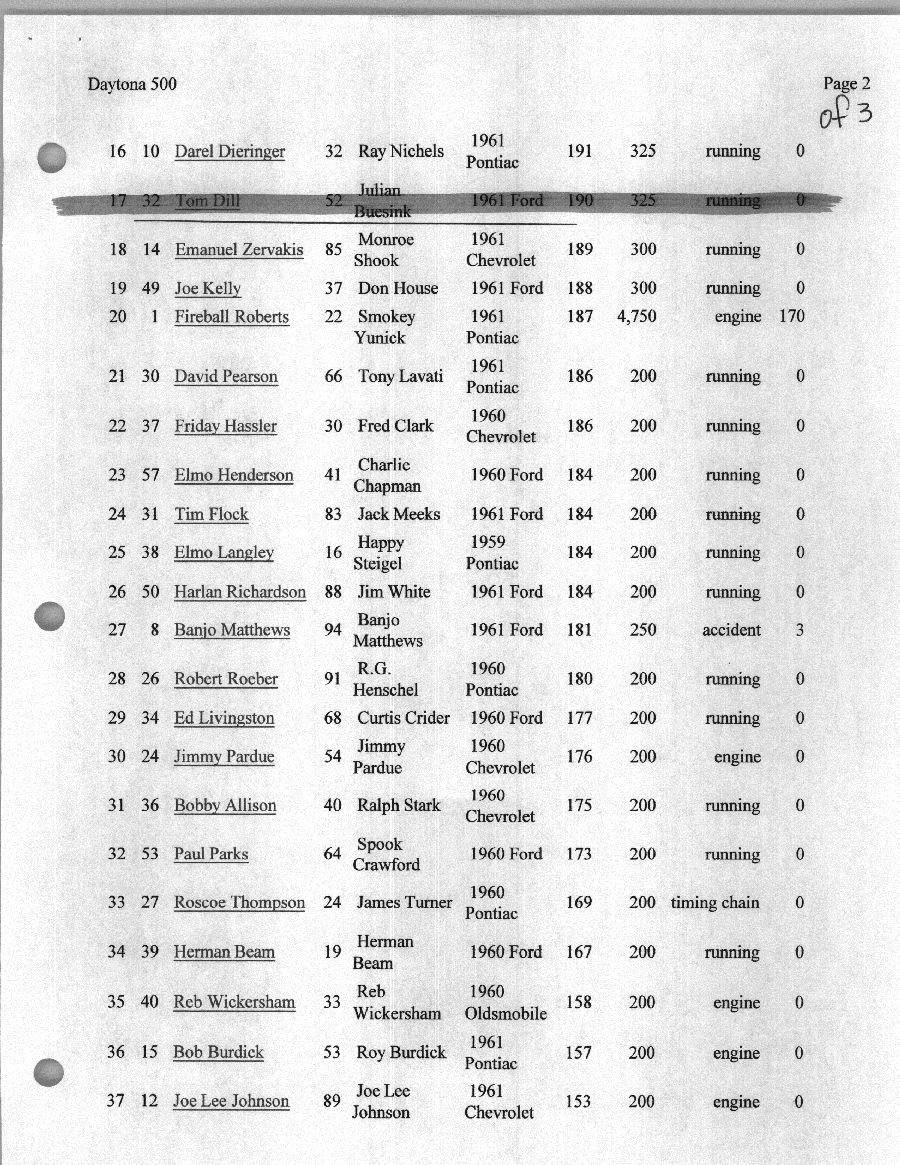 To support the nomination of Julian Buesink to the CSHOF, research on his auto racing career was compiled by Dennis Goggin and organized by the year covered.