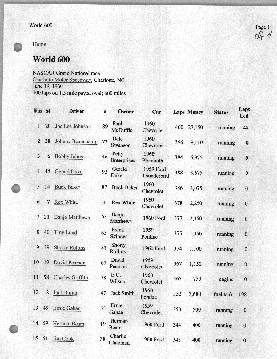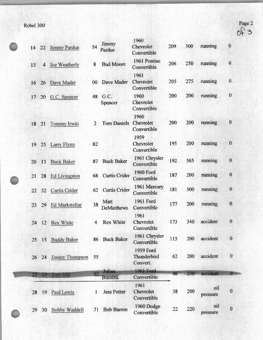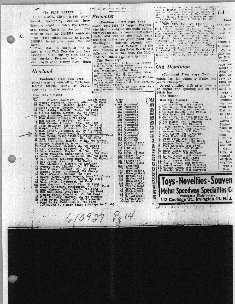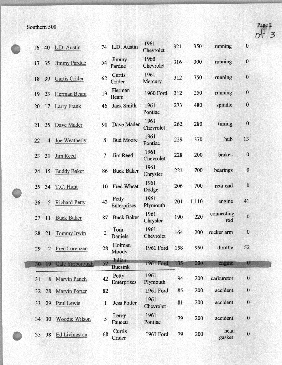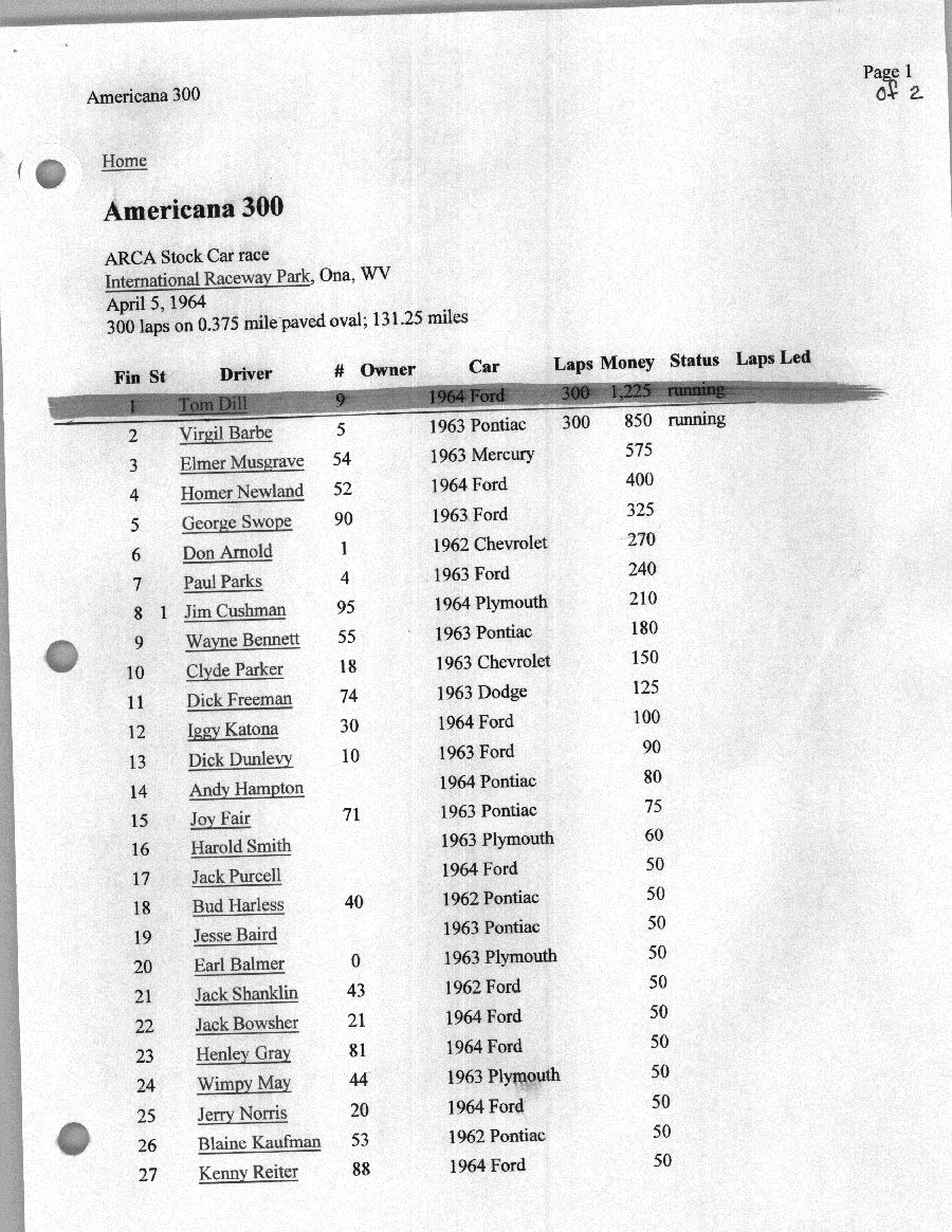 To support the nomination of Julian Buesink to the CSHOF, research on his auto racing career was compiled by Dennis Goggin and organized by the year covered.