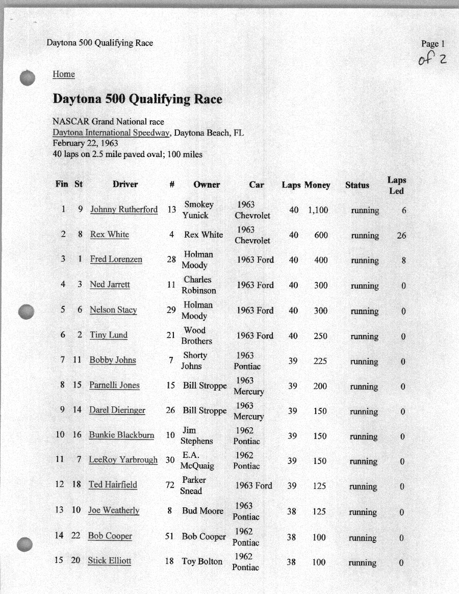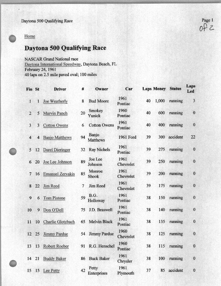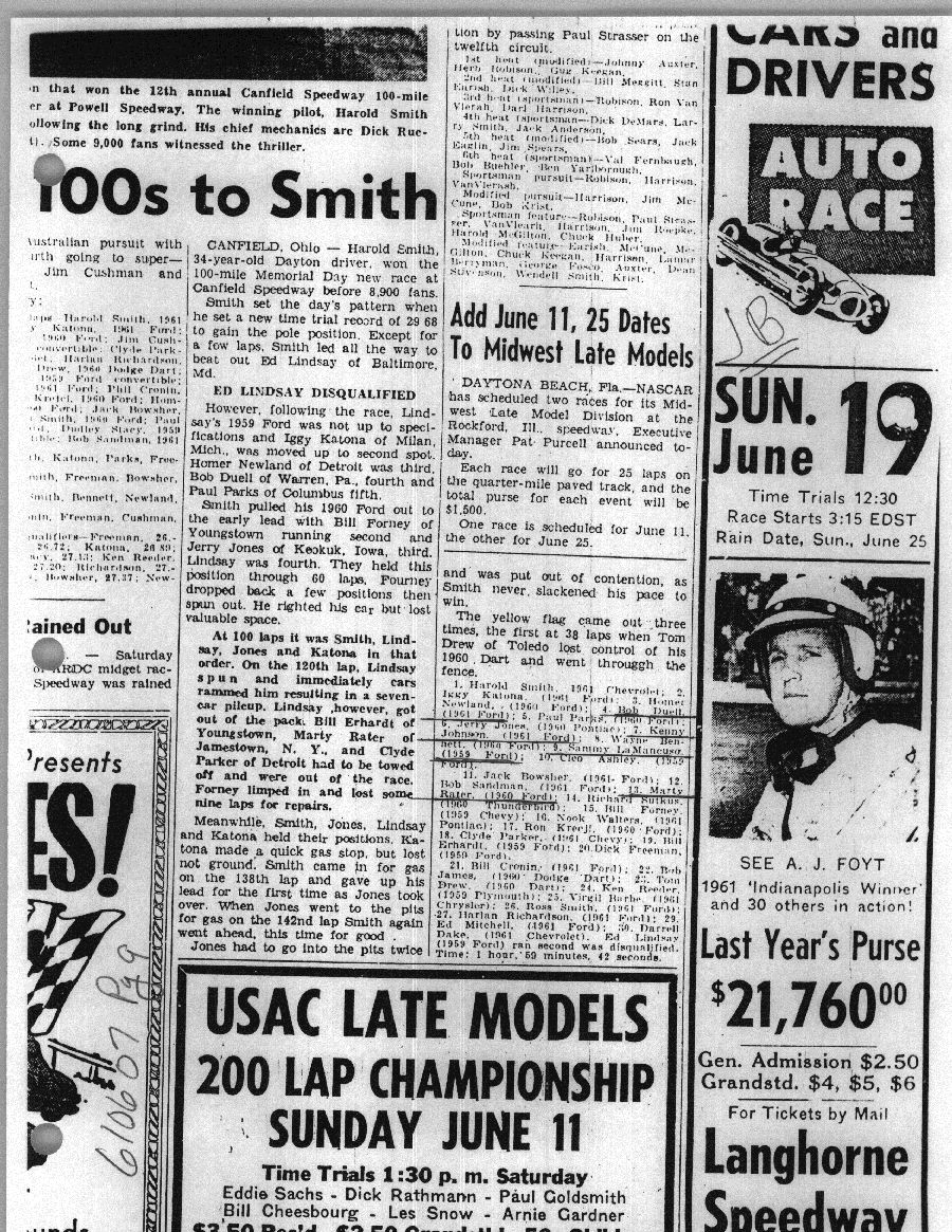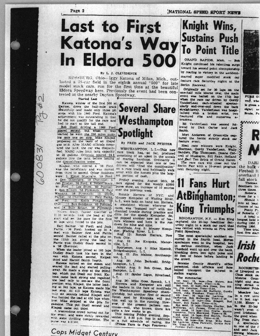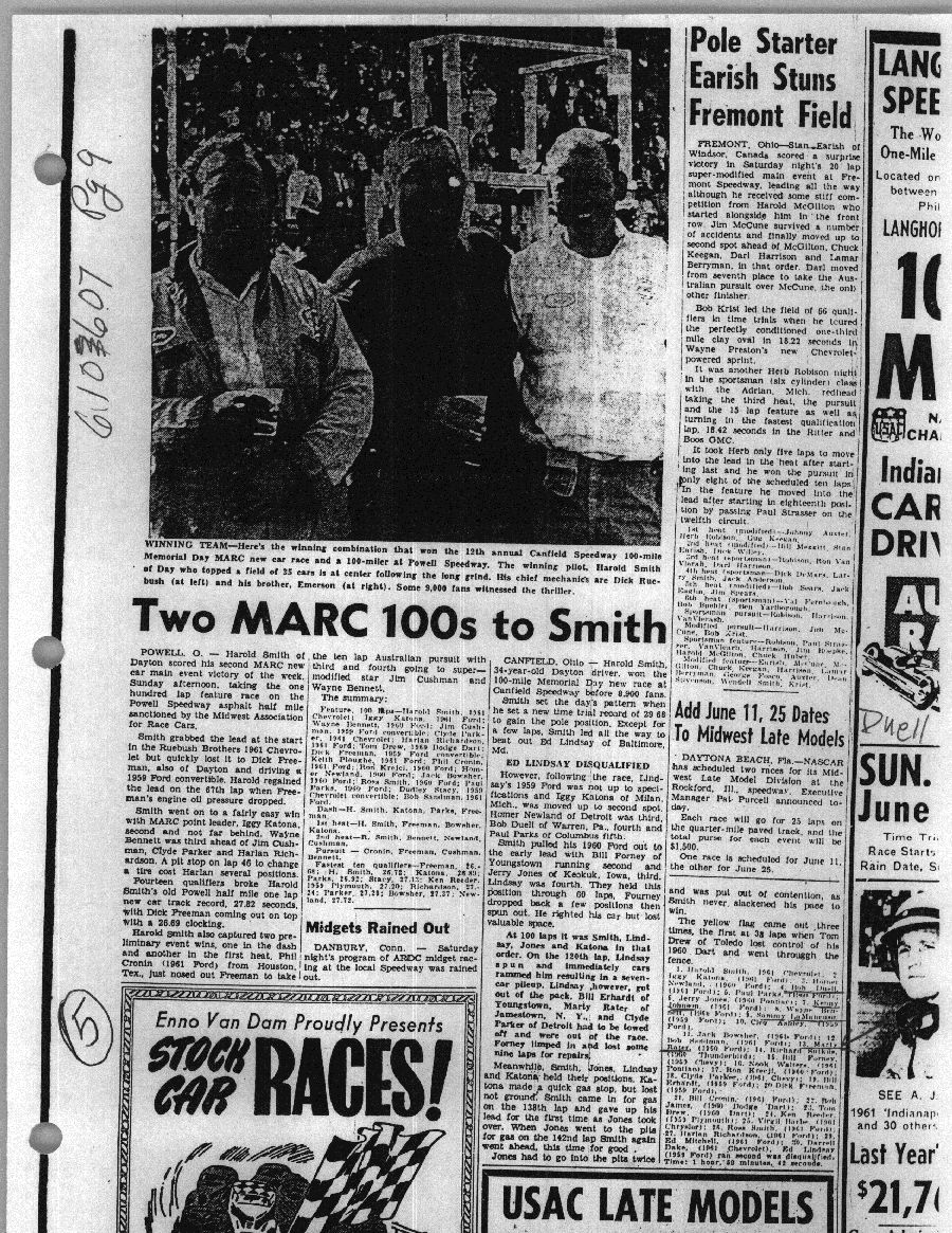 To support the nomination of Julian Buesink to the CSHOF, research on his auto racing career was compiled by Dennis Goggin and organized by the year covered.