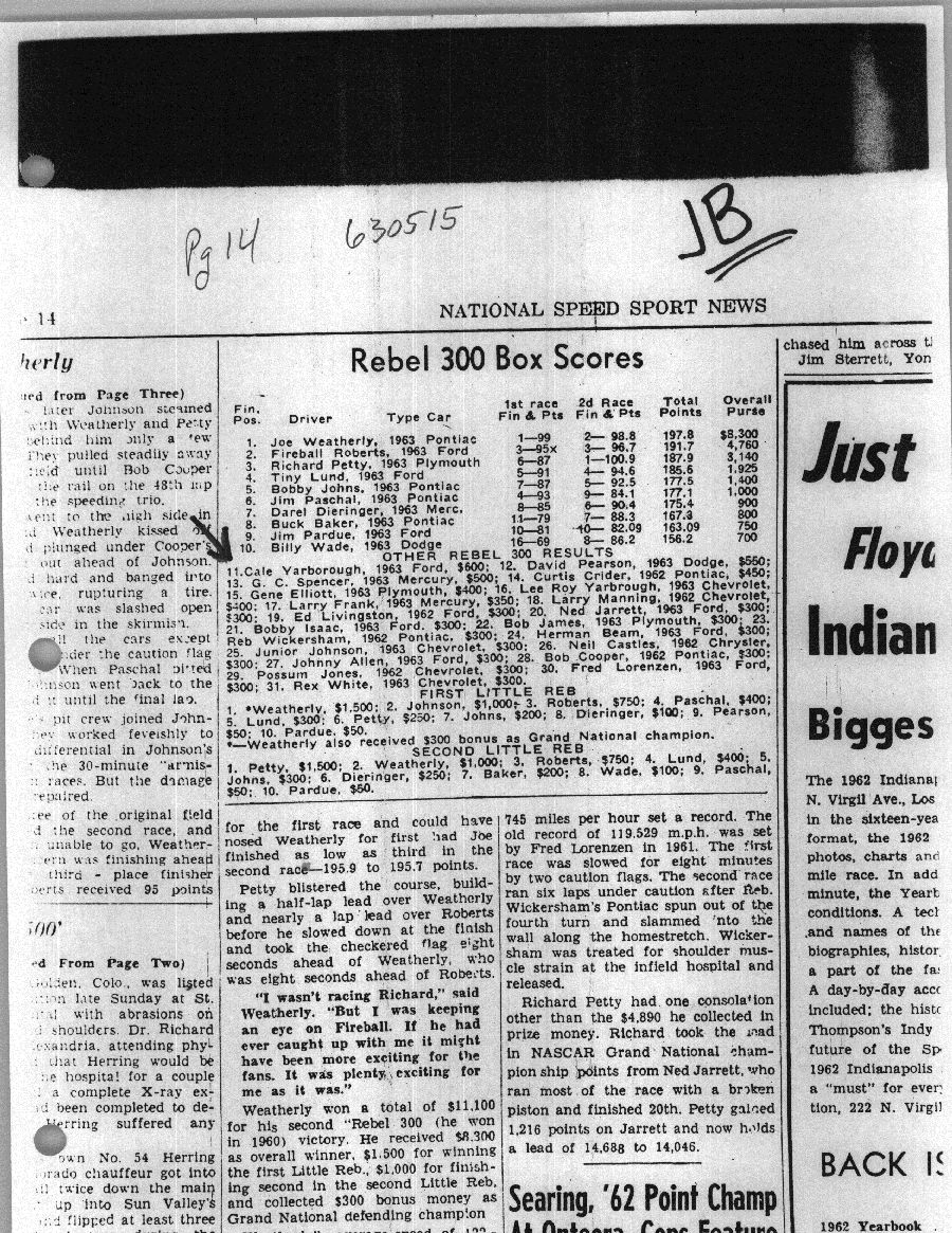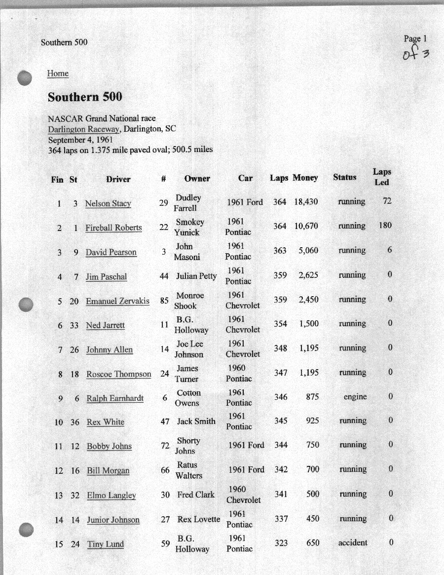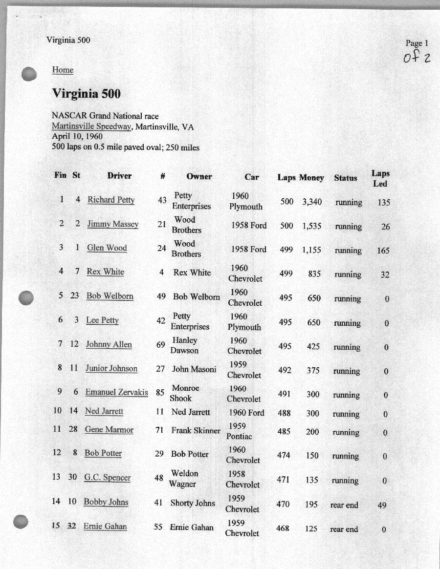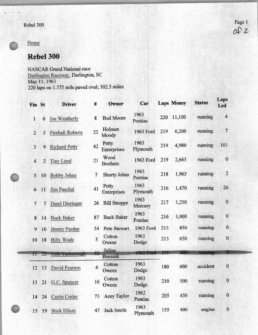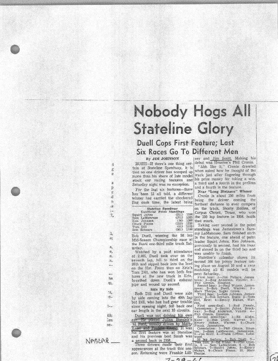 To support the nomination of Julian Buesink to the CSHOF, research on his auto racing career was compiled by Dennis Goggin and organized by the year covered.
