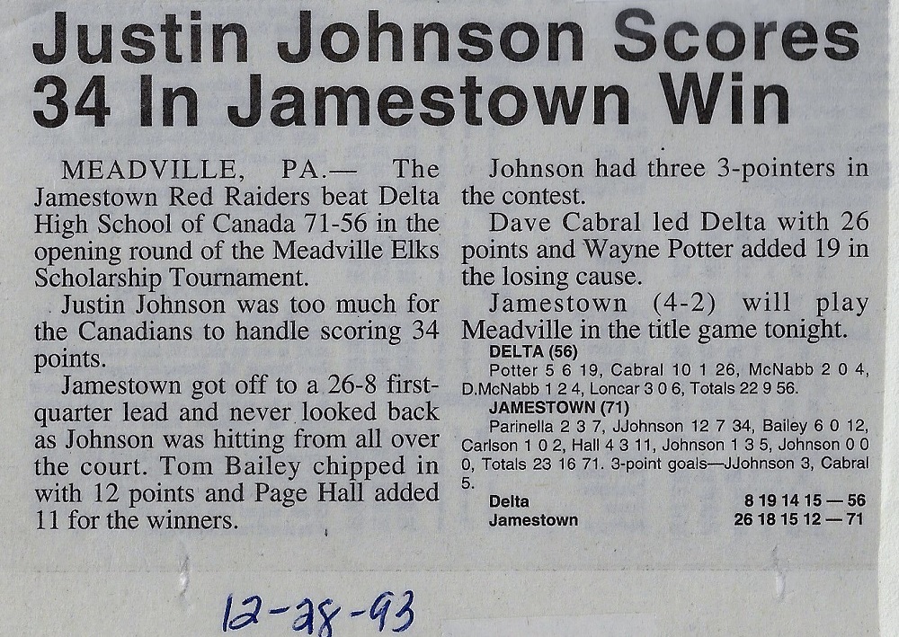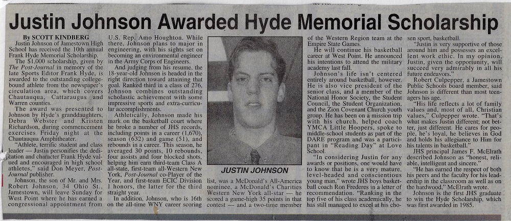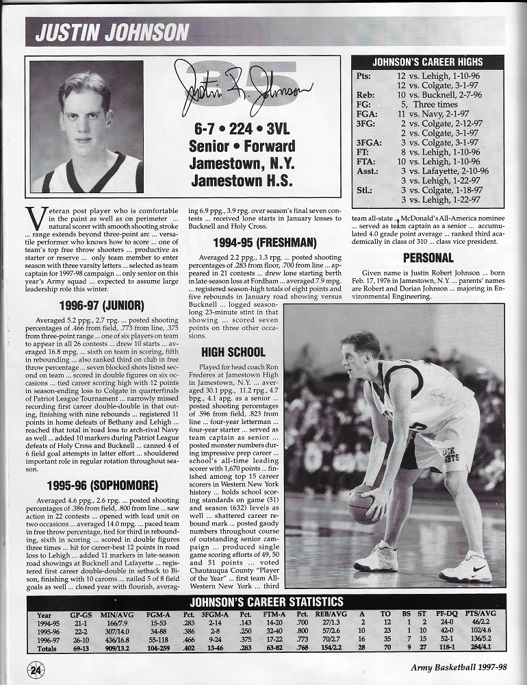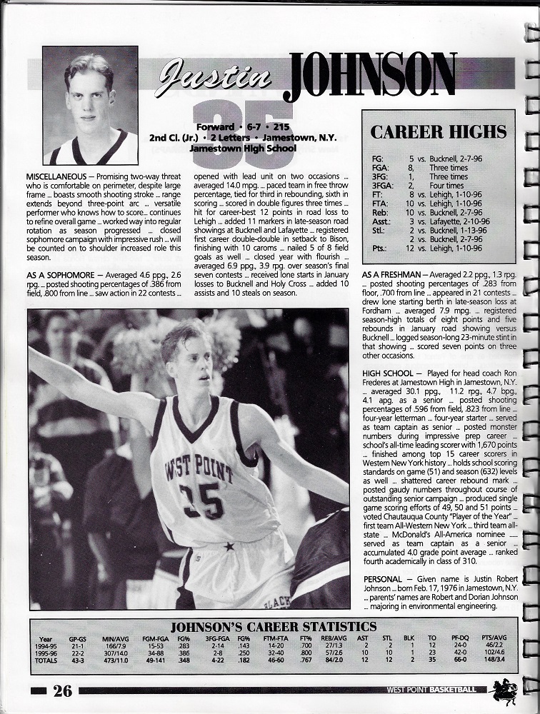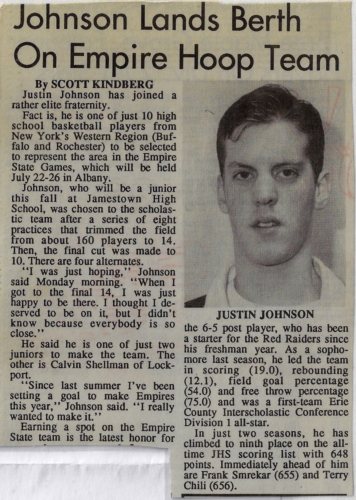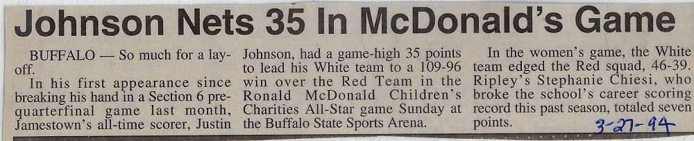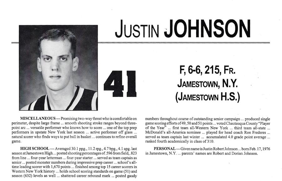 Justin played for the Western Region basketball team in the 1992 and 1993 Empire State Games and scored 35 points in a Ronald McDonald Charities game.