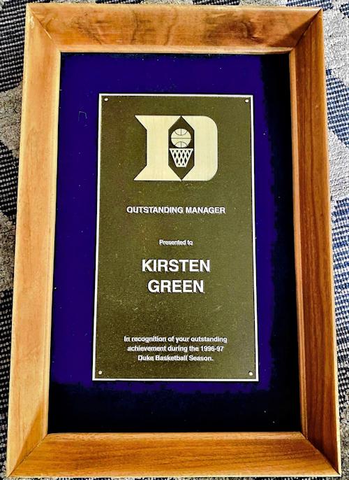 Her boss at Duke, Coach K, had this to say about Green: “In all the years that I have known Kirsten, my dealings with her have been enjoyable, efficient and most importantly, productive. She is an impressive woman, whether as a professional, as a member of a team, or in the community. Her ability to thrive in so many different settings and at so many places, I believe, is a testament to her considerable work ethic and drive to be the very best. These were traits I saw first-hand when she was at Duke as a student manager and have served her well in her professional career.”
