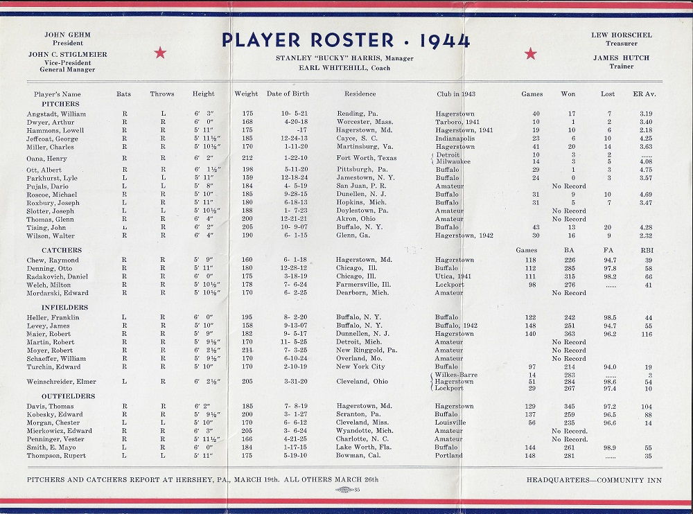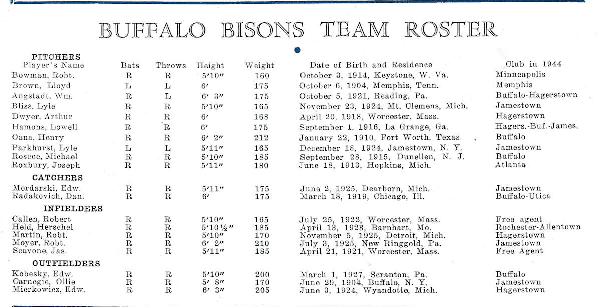 With Buffalo of the International League in 1943, Parkhurst compiled a 1-3 record. He then came back to Jamestown in 1944 and was 20-10. He retumed to Buffalo in 1945 and had an 11-5 record. Thereafter he pitched for Ashville, North Carolina in the Class B Tri-State League; Pueblo, Colorado of the Western League; back in the Tri-State League with Rock Hill, South Carolina; and finally with Olean in the PONY League before retiring in 1951.