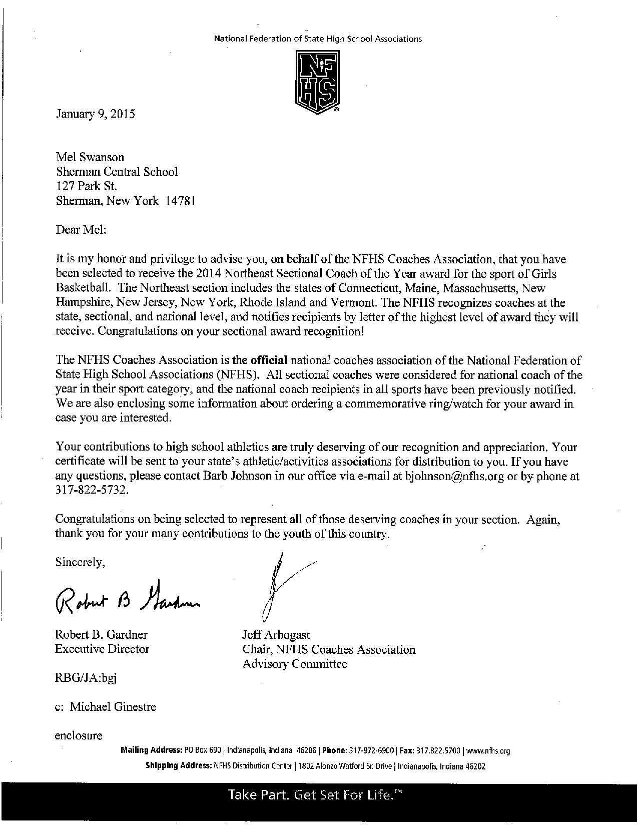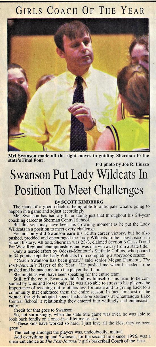 Entering the 2014-15 season, Swanson's varsity girls basketball record was 570-206. When combined with the other levels of boys and girls basketball at Sherman, his career mark is a staggering 1,043-427. In October, the National Federation of State High School Associations named him the New York girls basketball Coach of the Year.