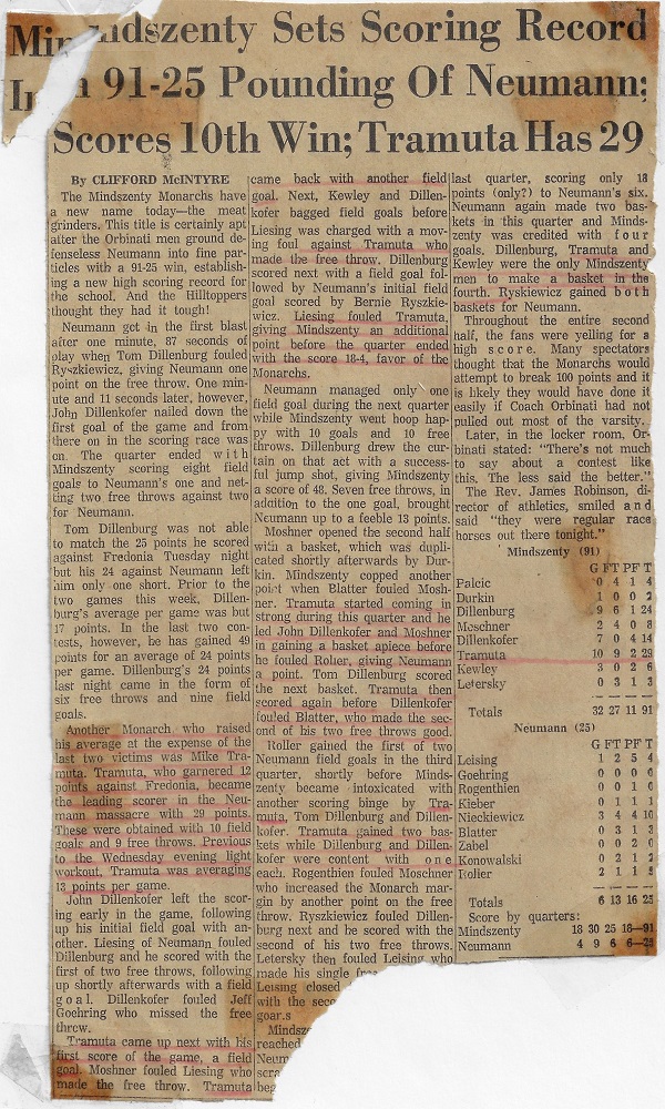 Mike attended Dunkirk High School from 1956-1959. He lettered in football, basketball, baseball and track as a sophomore and junior. He transferred to Cardinal Mindszenty for his senior year.