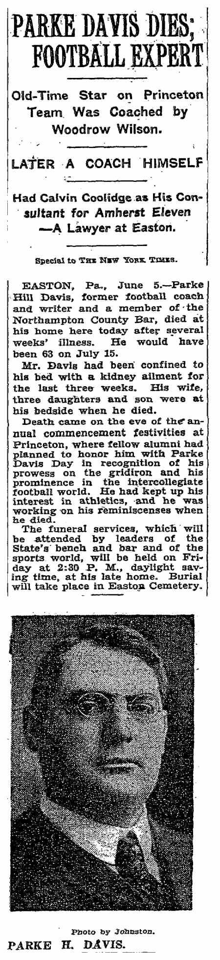 Upon graduating from Jamestown High School, Davis attended Princeton University where he obtained his bachelor's and master's degrees. While there, he was a member of the football team, which was coached by Woodrow Wilson, who would later become the 28th president of the United States; was a leading boxer, who once sparred with champion John L. Sullivan; and was a member of the tug-of-war team.