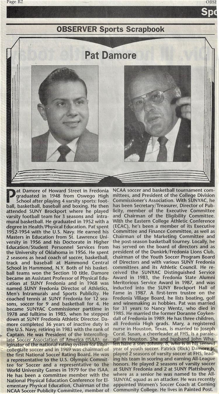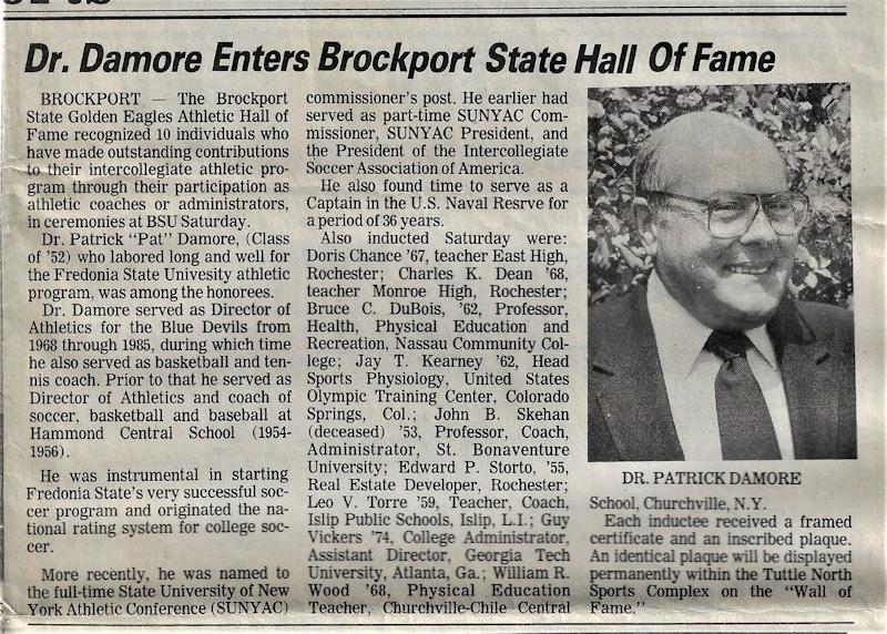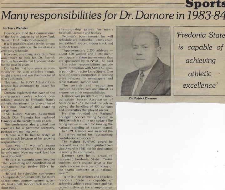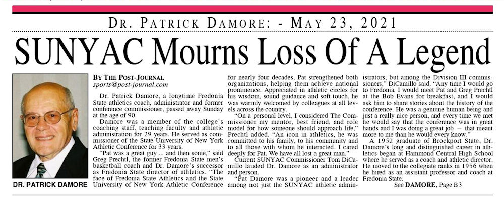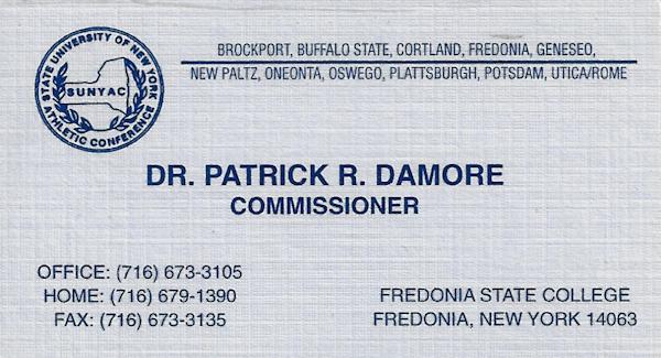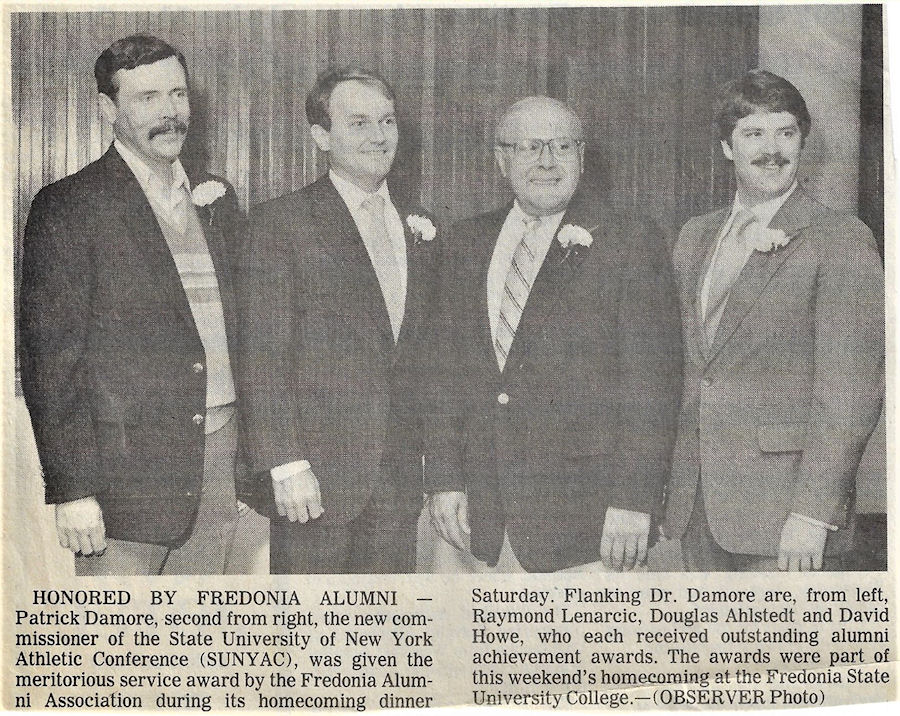 Dr. Patrick Richard Damore of Fredonia has been involved in State University of New York Athletic Conference (SUNYAC) and Fredonia State athletics for many years.
