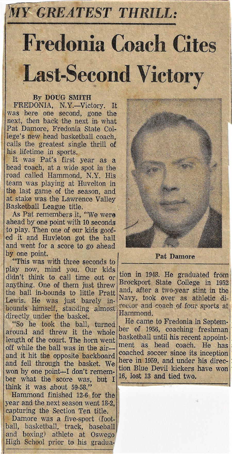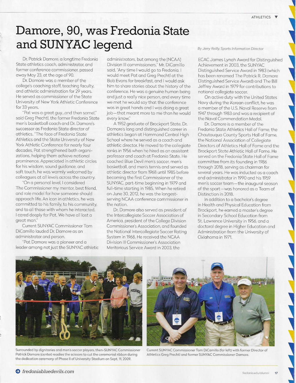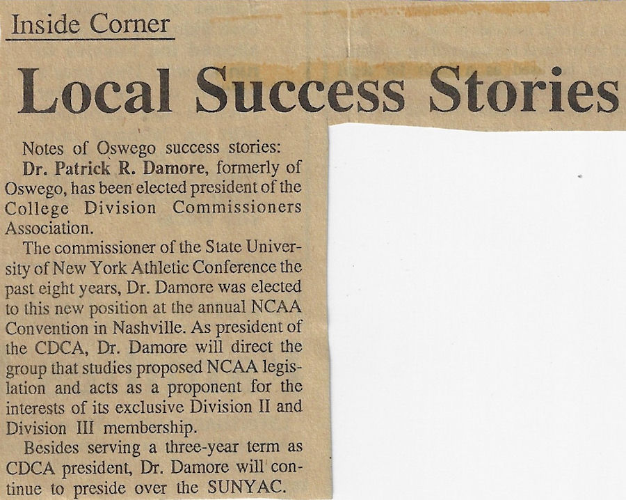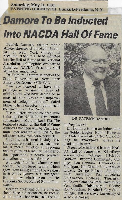 Dr. Patrick Richard Damore of Fredonia has been involved in State University of New York Athletic Conference (SUNYAC) and Fredonia State athletics for many years.