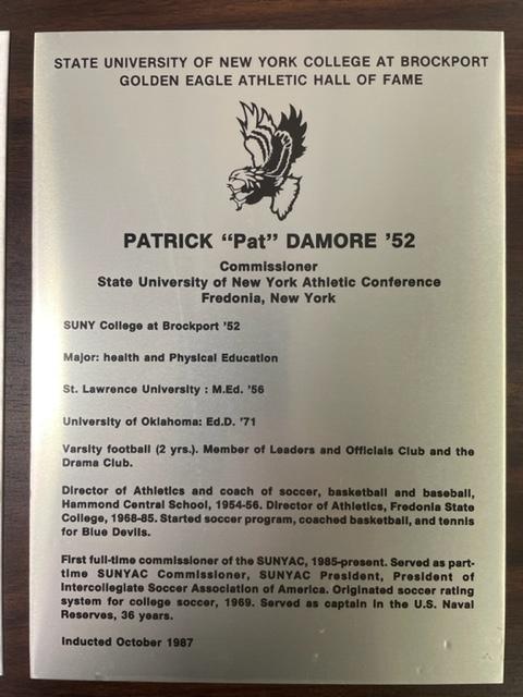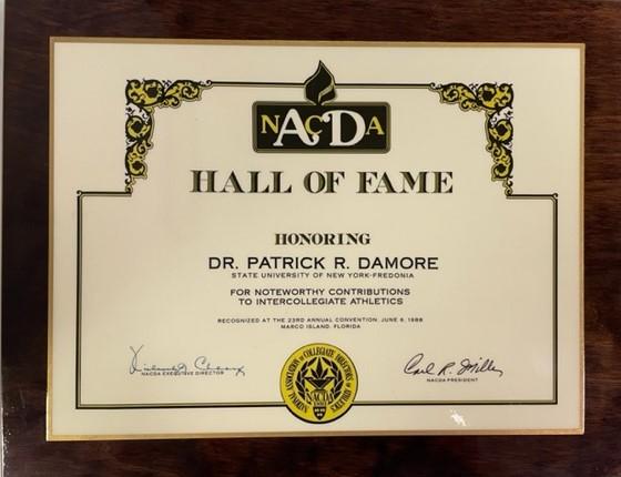 This marks the fourth Hall of Fame that has been inducted Damore. He is also in the The College at Brockport Athletics Hall of Fame, the National Association of Collegiate Directors of Athletics Hall of Fame and the Fredonia State Hall of Fame.