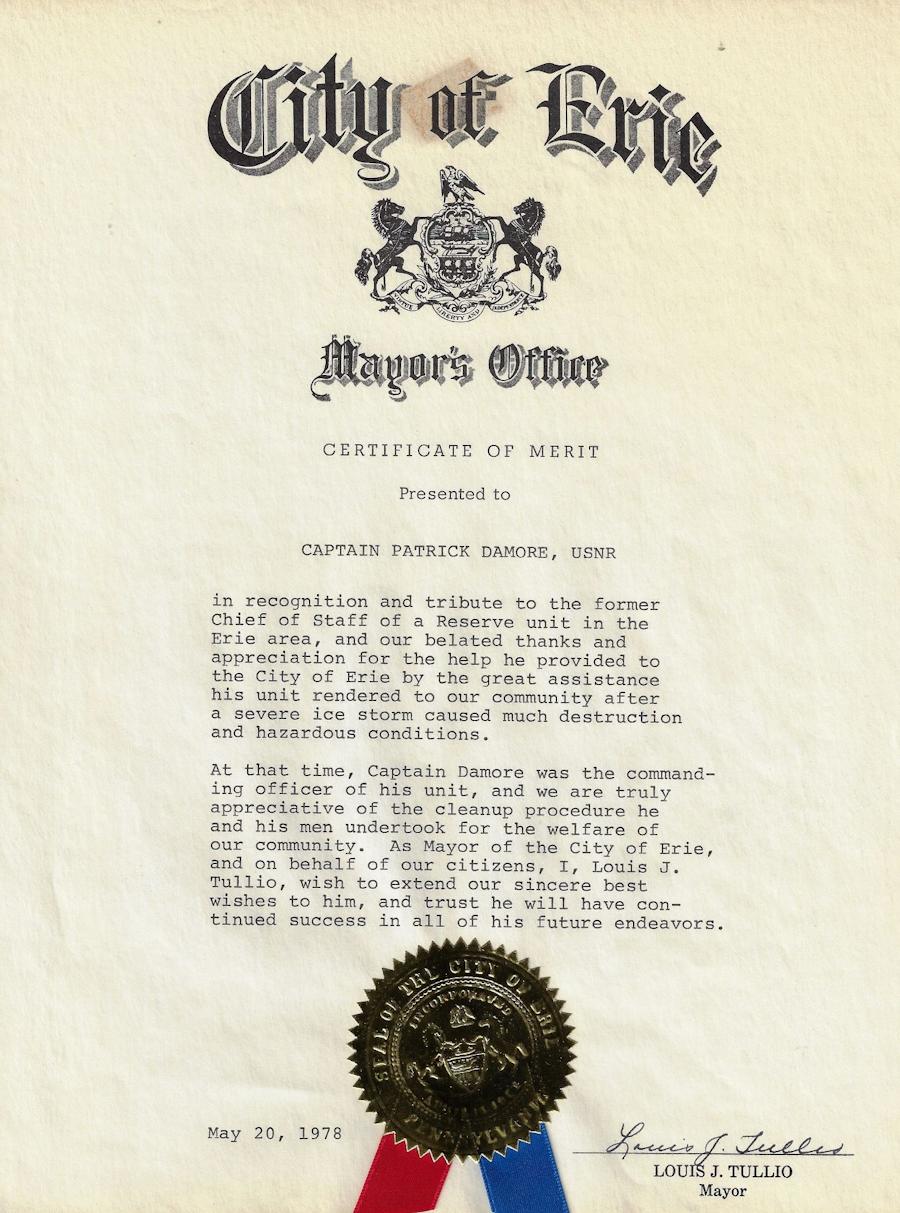Following his retirement as a captain in the United States Naval Reserve, he received a naval commendation medal. He served on active naval duty during the Korean conflict.