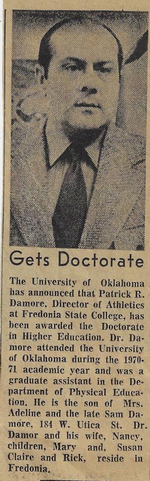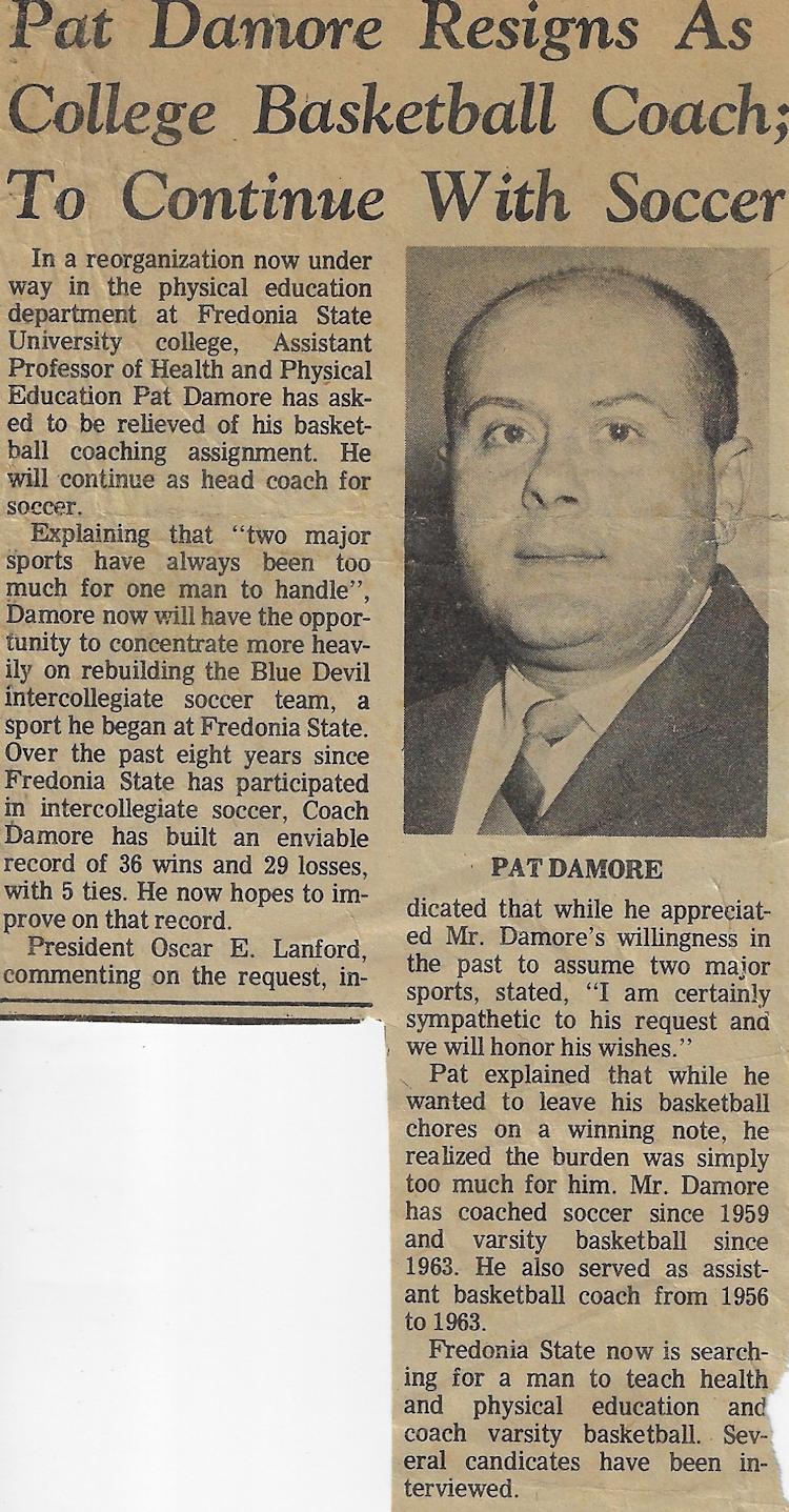 After 29 years at Fredonia State, Damore retired on July 1, 1985.