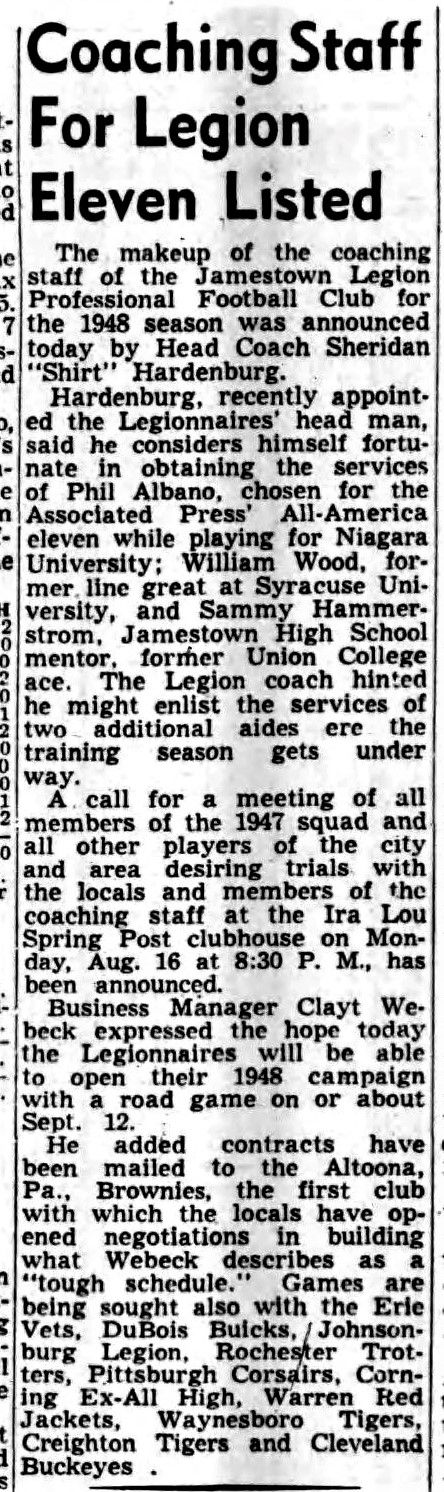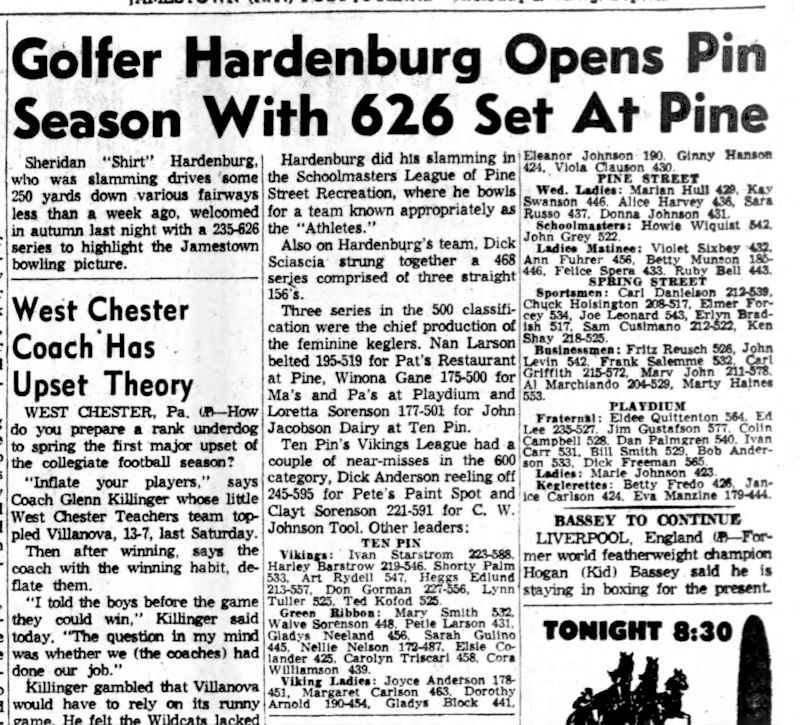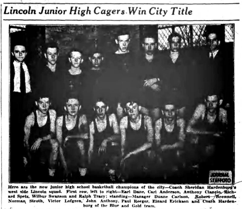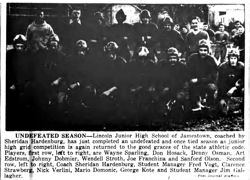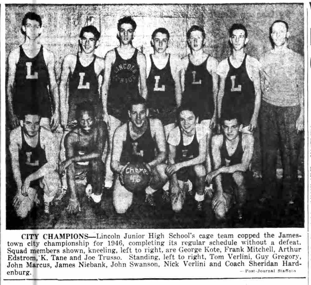His accomplishments began at Chautauqua Central School. He lettered in basketball for four years, 1925-29, and was an all-star forward in 1929. For three years in a row Chautauqua won the county championship and represented the county in Buffalo in the days before schools were classified according to enrollment.