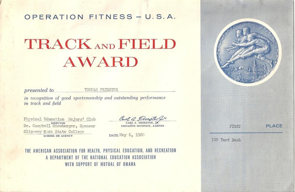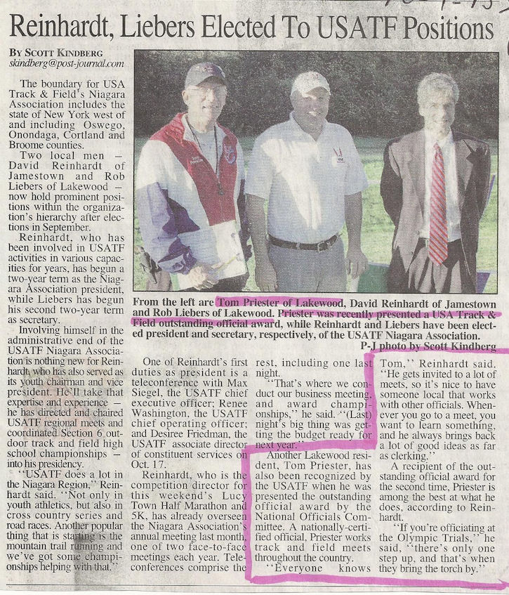 Priester has also distinguished himself as an outstanding high school track and field official from1975 to the present day and has been a USA Track & Field official since 1985. He has officiated NCAA Division I, II, II track and field championship meets and also national and international meets, including two U.S. Olympic trials.