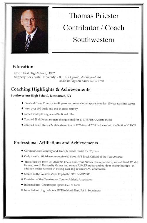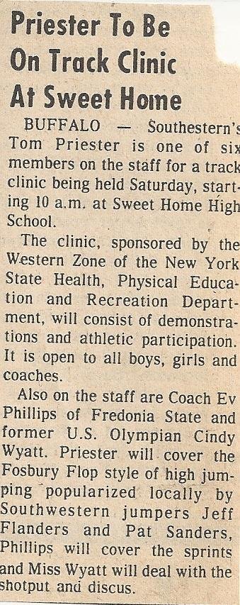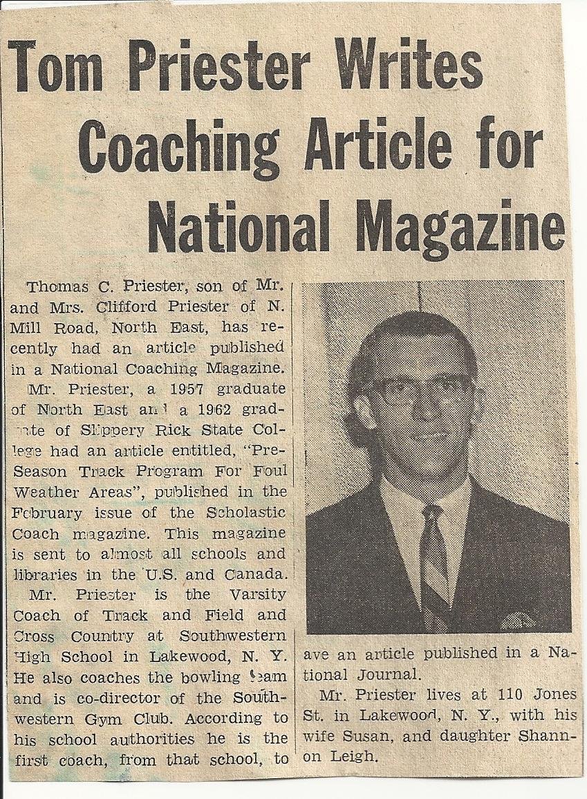 Priester also coached track and field from 1966-1974 where his team won the county championship in 1973 and were sectional champs in 1968 and 1973.