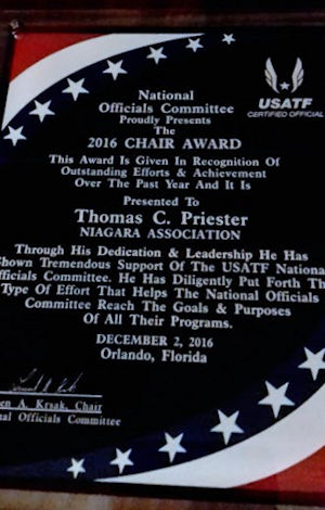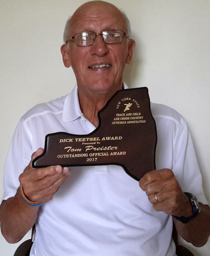 As expected, Preister's list of awards is lengthy and includes multiple awards for teaching, coaching and officiating excellence. Two of the highlights were receiving the New York State Track Officials Dick Ferzinger Award for distinguished service in coaching track and field in 2007. He was given the Outstanding Service Award for the Niagara Association of USA Track & Field in 2009.