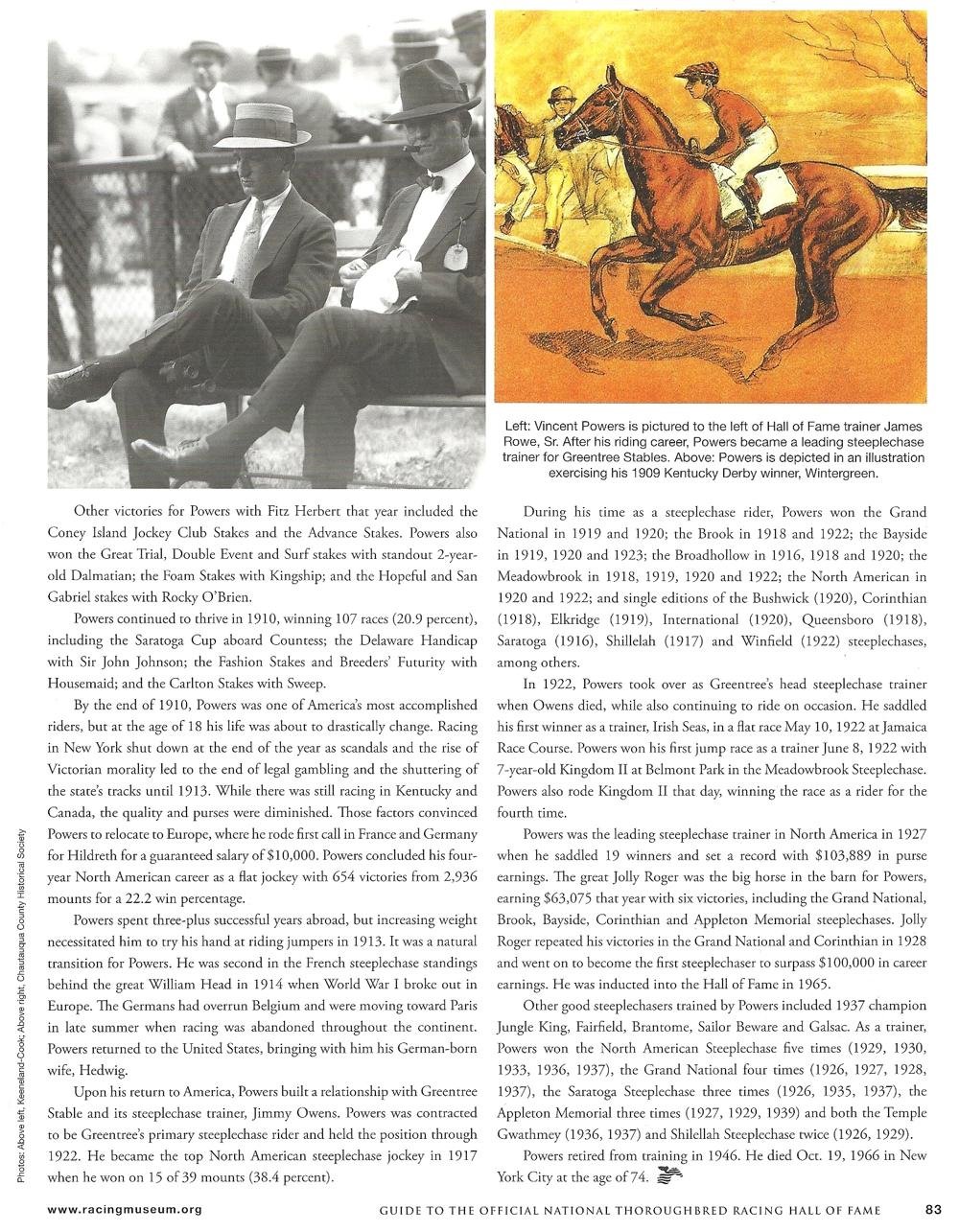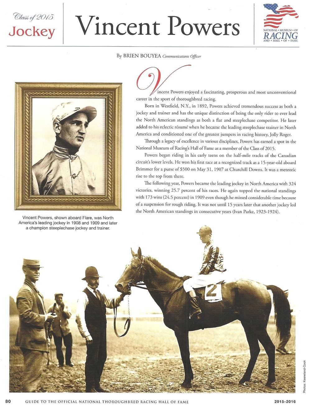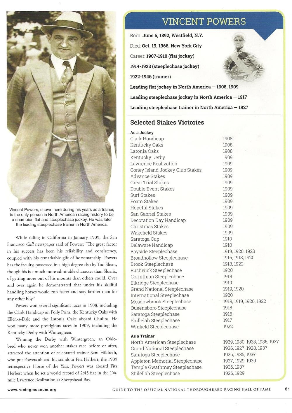- "Vincent Powers." National Museum of Racing And Hall of Fame. Accessed December 4, 2022. https://www.racingmuseum.org/hall-of-fame/jockey/vincent-powers.
