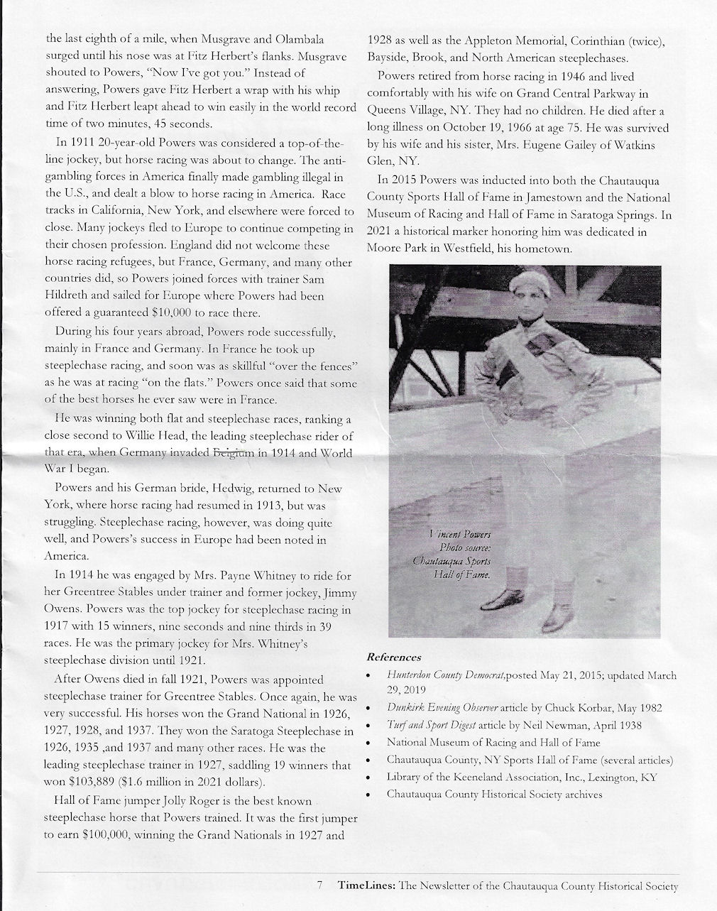 - "Westfield Jockey To Receive Highest Honor." Post-Journal (Jamestown), August 4, 2015.