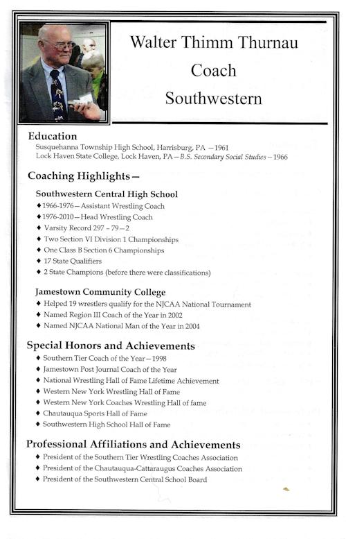 He graduated from Lock Haven State College in 1966 and came to Chautauqua County, landing at Southwestern as an assistant coach where he honed his trade under the guidance of another coaching legend, Clarence "Flash" Olson.